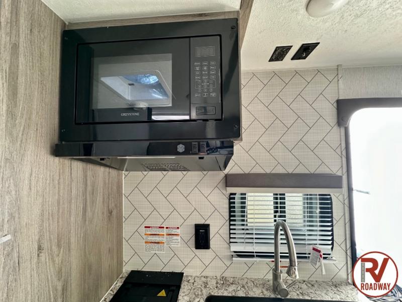 You can trust the build and enjoy your experience with any one of these Sunset Park RV Sun Lite travel trailers! Their aerodynamic profile is not only easy to haul, but also saves on fuel. They are built to withstand years of traveling even though they are lightweight with a diamond plate rock guard, a one piece PVC roof membrane, Dexter Spring-Leaf axles, and tinted safety glass windows. Some comfort standards you are sure to enjoy are the two-burner stove top range with hood, light and fan, plus the refrigerator and microwave, and an outside shower to help keep the dirt outdoors where it belongs.