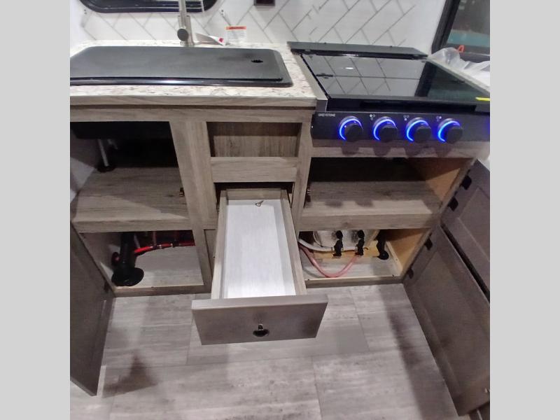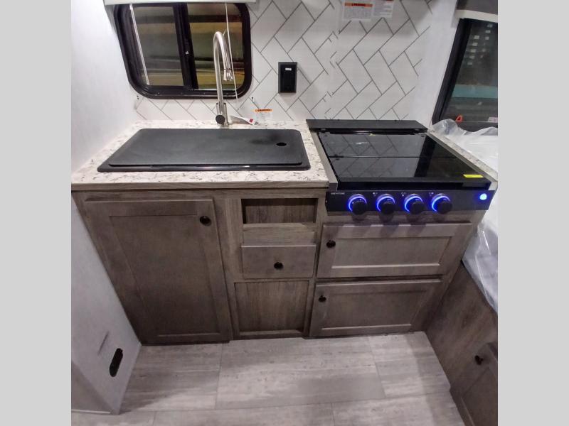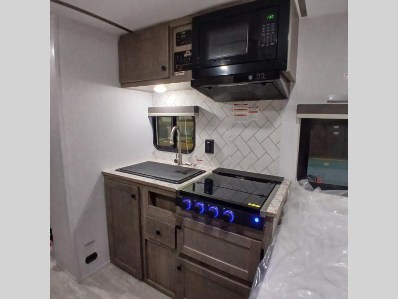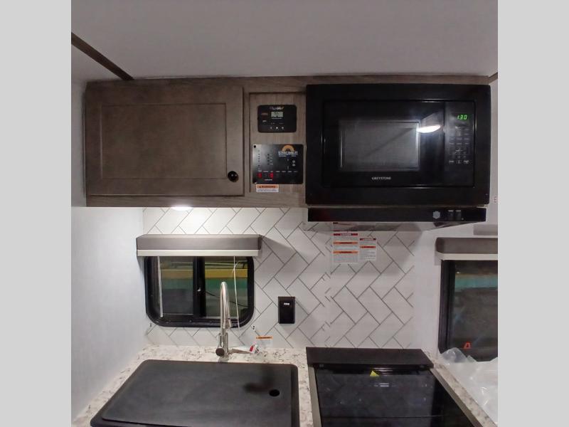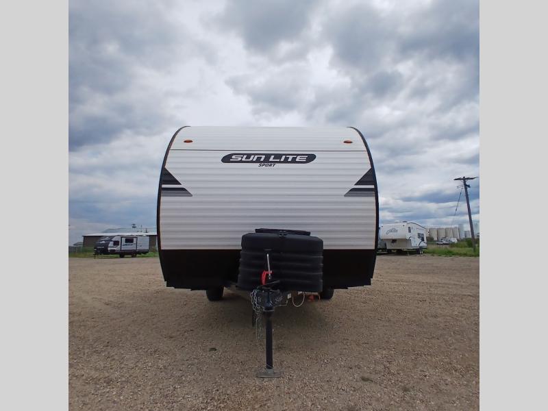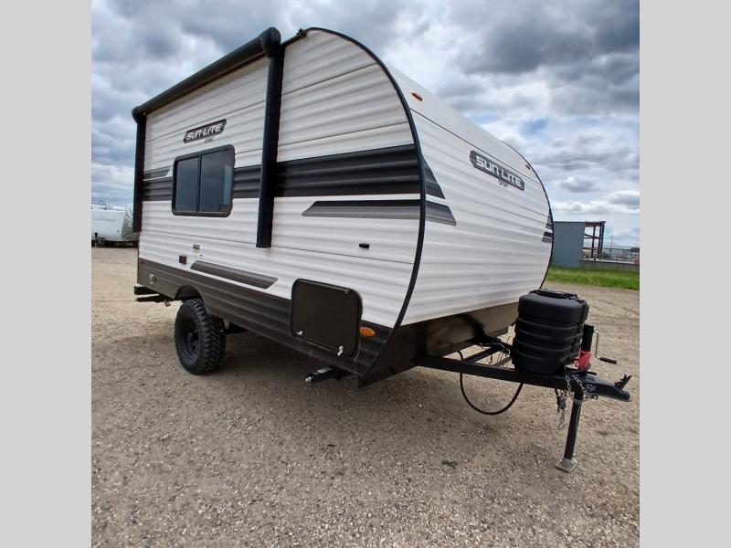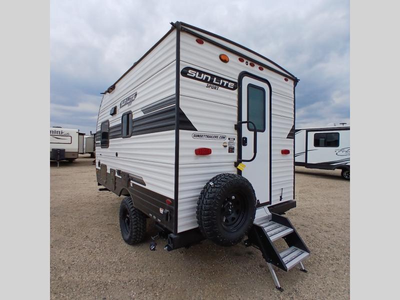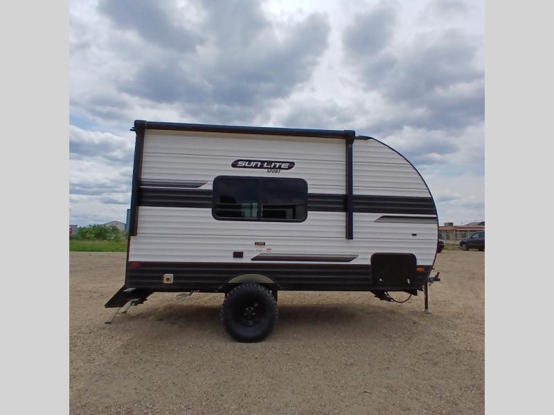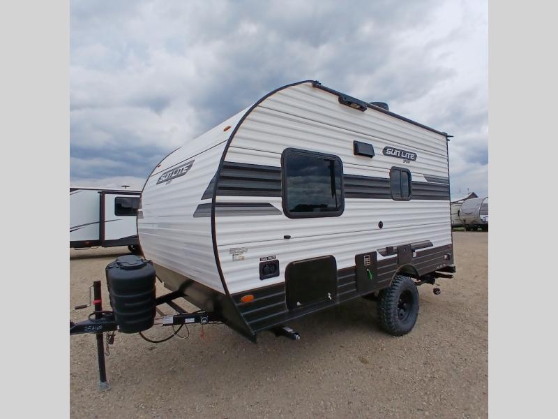 You can trust the build and enjoy your experience with any one of these Sunset Park RV Sun Lite travel trailers! Their aerodynamic profile is not only easy to haul, but also saves on fuel. They are built to withstand years of traveling even though they are lightweight with a diamond plate rock guard, a one piece PVC roof membrane, Dexter Spring-Leaf axles, and tinted safety glass windows. Some comfort standards you are sure to enjoy are the two-burner stove top range with hood, light and fan, plus the refrigerator and microwave, and an outside shower to help keep the dirt outdoors where it belongs.