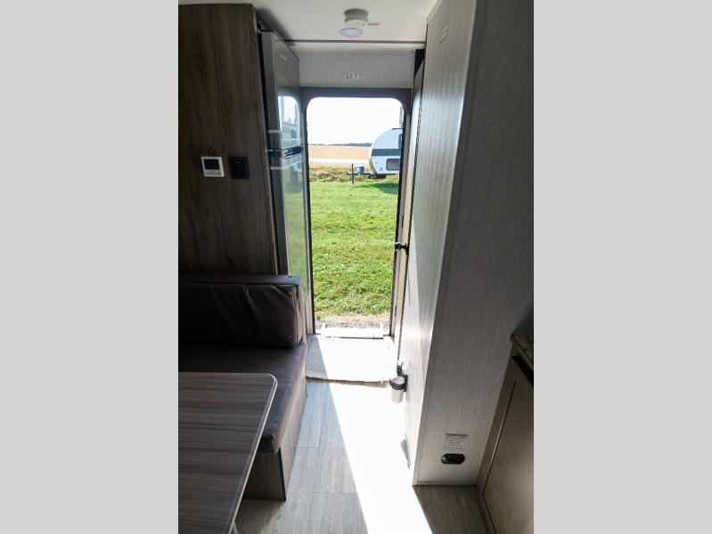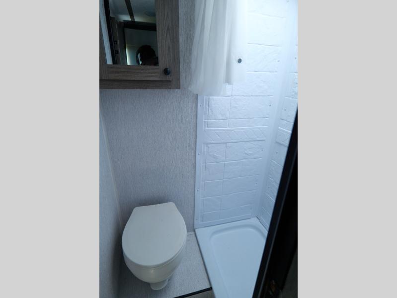 This travel trailer is perfect for couples who want to getaway together! The front bed offers a comfortable place to lay your head at night. When you're not using the booth dinette to enjoy a meal that you prepared with the two burner cooktop or playing a card game, you can transform it into an extra sleeping space. You can start your mornings feeling clean and fresh after showering in the tub with unwanted steam removed with the power roof vent.