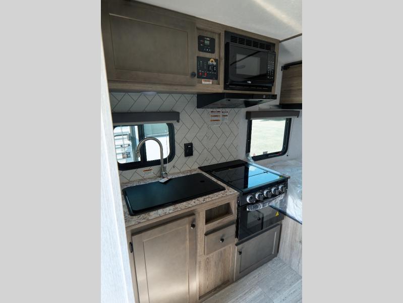 You can trust the build and enjoy your experience with any one of these Sunset Park RV Sun Lite travel trailers! Their aerodynamic profile is not only easy to haul, but also saves on fuel. They are built to withstand years of traveling even though they are lightweight with a diamond plate rock guard, a one piece PVC roof membrane, Dexter Spring-Leaf axles, and tinted safety glass windows. Some comfort standards you are sure to enjoy are the two-burner stove top range with hood, light and fan, plus the refrigerator and microwave, and an outside shower to help keep the dirt outdoors where it belongs.