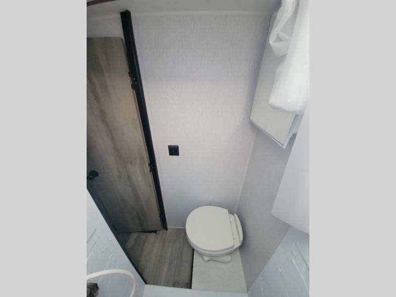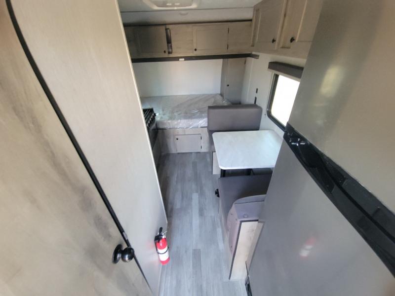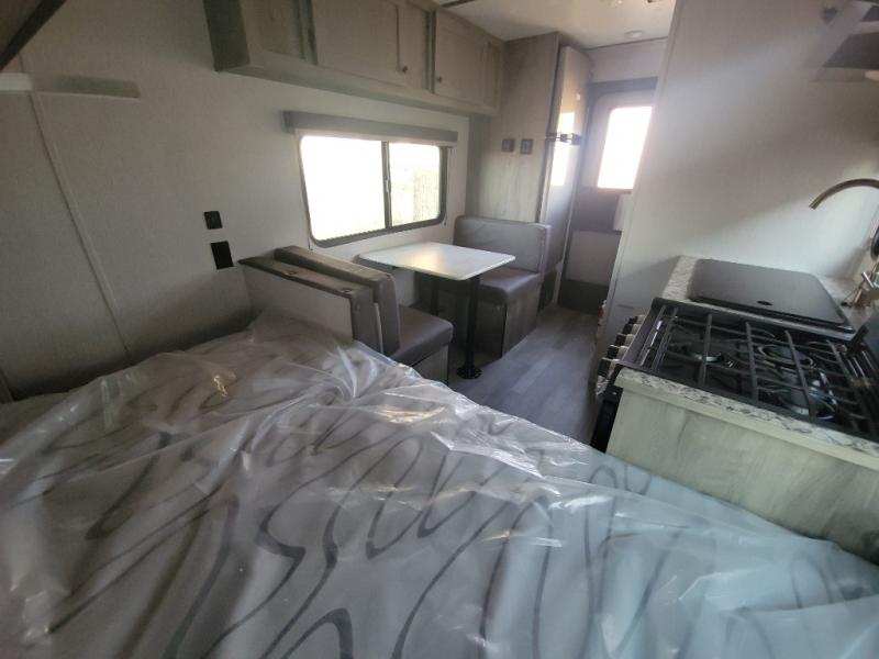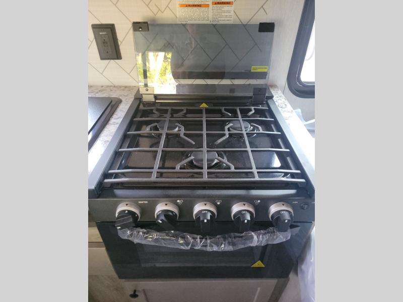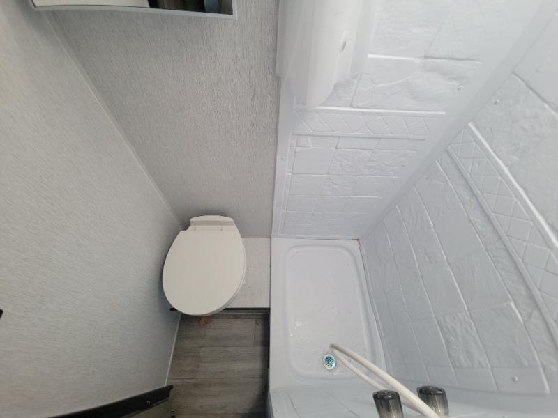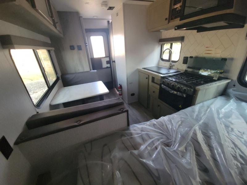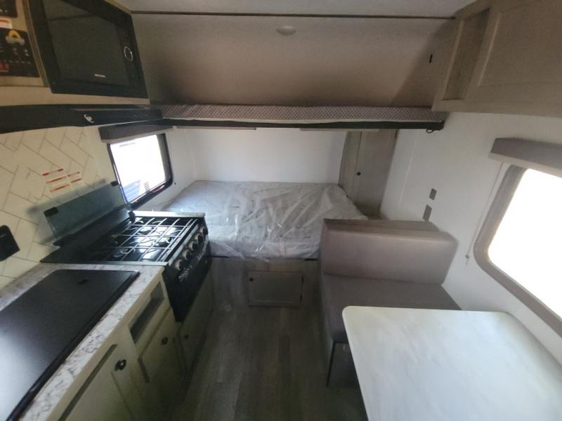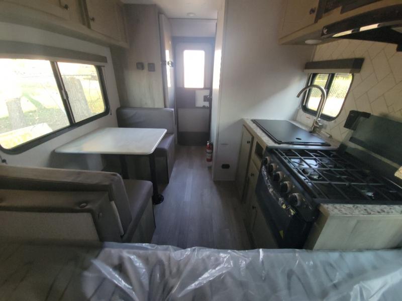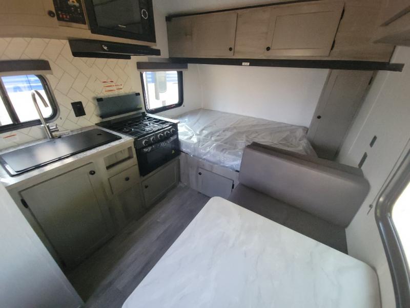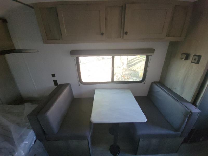 This travel trailer is perfect for couples who want to getaway together! The front bed offers a comfortable place to lay your head at night. When you're not using the booth dinette to enjoy a meal that you prepared with the two burner cooktop or playing a card game, you can transform it into an extra sleeping space. You can start your mornings feeling clean and fresh after showering in the tub with unwanted steam removed with the power roof vent.