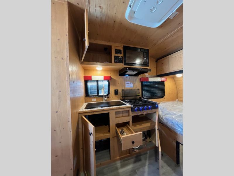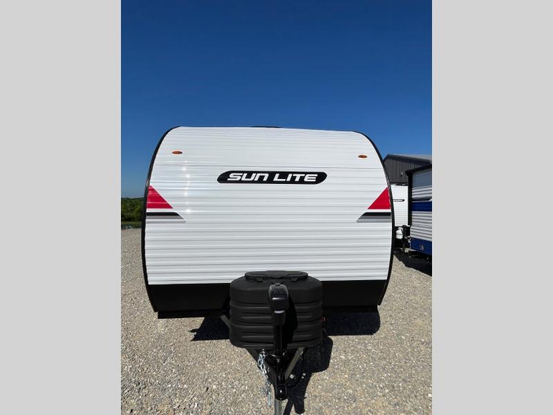 You can trust the build and enjoy your experience with any one of these Sunset Park RV Sun Lite travel trailers! Their aerodynamic profile is not only easy to haul, but also saves on fuel. They are built to withstand years of traveling even though they are lightweight with a diamond plate rock guard, a one piece PVC roof membrane, Dexter Spring-Leaf axles, and tinted safety glass windows. Some comfort standards you are sure to enjoy are the two-burner stove top range with hood, light and fan, plus the refrigerator and microwave, and an outside shower to help keep the dirt outdoors where it belongs.