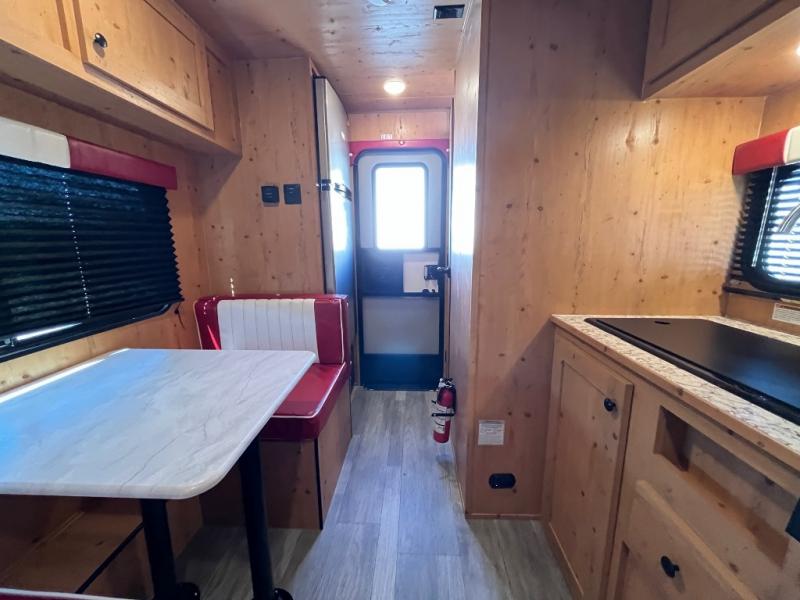 This travel trailer is perfect for couples who want to getaway together! The front bed offers a comfortable place to lay your head at night. When you're not using the booth dinette to enjoy a meal that you prepared with the two burner cooktop or playing a card game, you can transform it into an extra sleeping space. You can start your mornings feeling clean and fresh after showering in the tub with unwanted steam removed with the power roof vent.