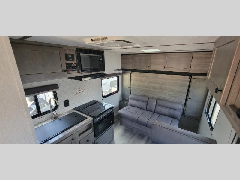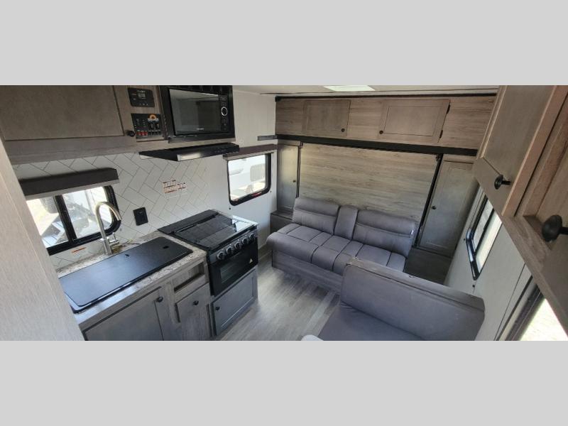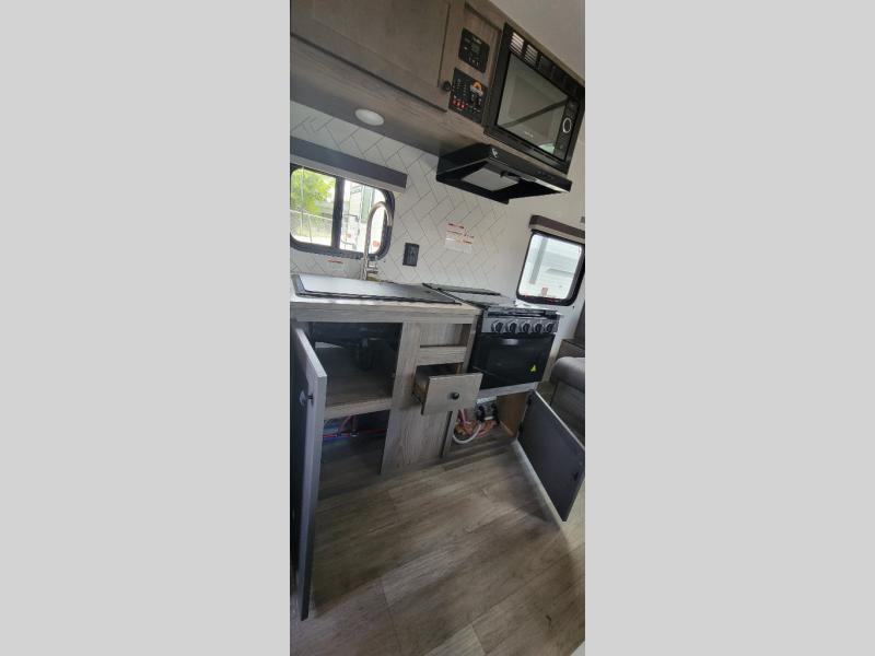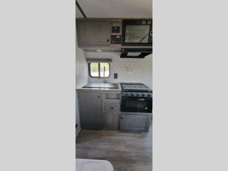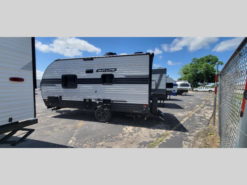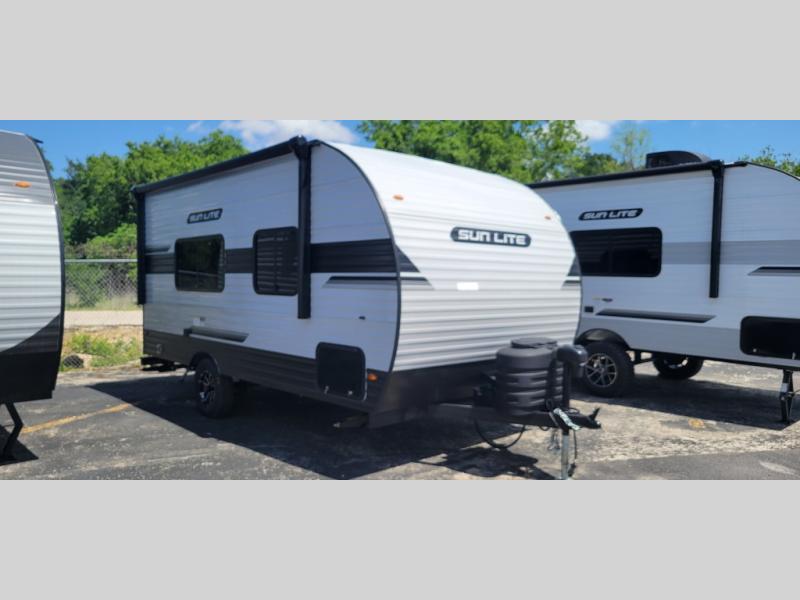 You can trust the build and enjoy your experience with any one of these Sunset Park RV Sun Lite travel trailers! Their aerodynamic profile is not only easy to haul, but also saves on fuel. They are built to withstand years of traveling even though they are lightweight with a diamond plate rock guard, a one piece PVC roof membrane, Dexter Spring-Leaf axles, and tinted safety glass windows. Some comfort standards you are sure to enjoy are the two-burner stove top range with hood, light and fan, plus the refrigerator and microwave, and an outside shower to help keep the dirt outdoors where it belongs.