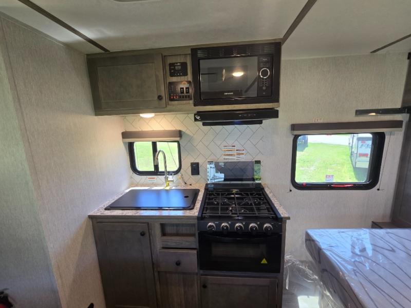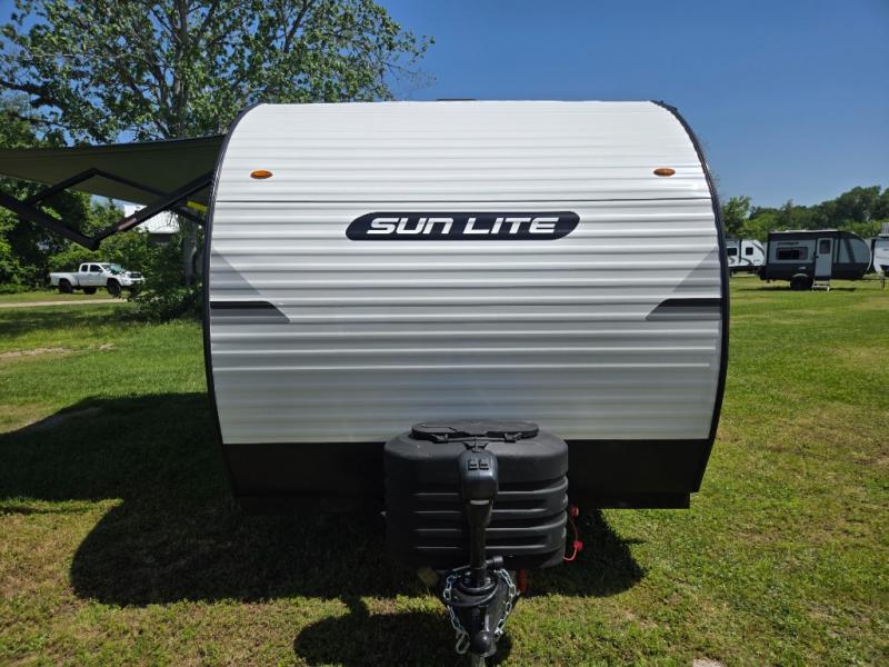 You can trust the build and enjoy your experience with any one of these Sunset Park RV Sun Lite travel trailers! Their aerodynamic profile is not only easy to haul, but also saves on fuel. They are built to withstand years of traveling even though they are lightweight with a diamond plate rock guard, a one piece PVC roof membrane, Dexter Spring-Leaf axles, and tinted safety glass windows. Some comfort standards you are sure to enjoy are the two-burner stove top range with hood, light and fan, plus the refrigerator and microwave, and an outside shower to help keep the dirt outdoors where it belongs.
