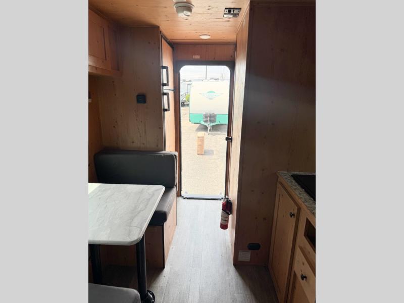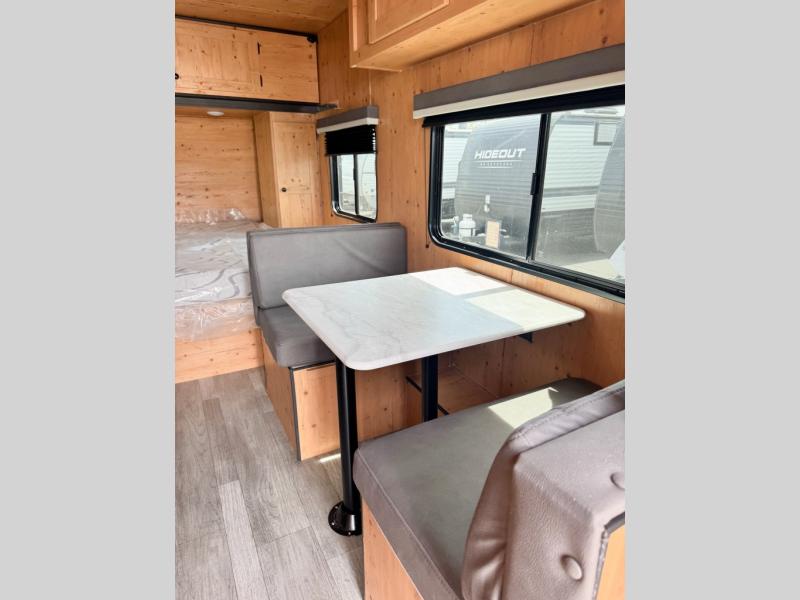 Pack your bags and load up this travel trailer for a great camping trip! You will have everything you need to keep your belly full with the two burner cooktop, your hair clean with a tub inside rear corner bathroom which also has a power vent fan, and your body well rested after sleeping on the front bed. You can even play card games at the booth dinette or transform it into an extra sleeping space. There is also an outside shower to rinse the mud off your feet before entering inside!