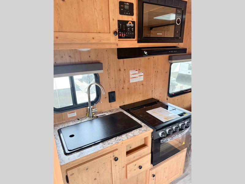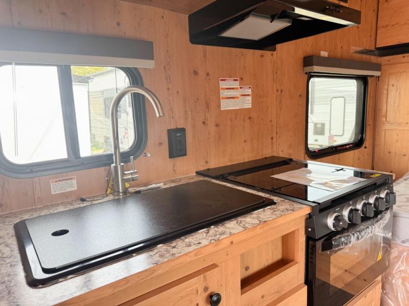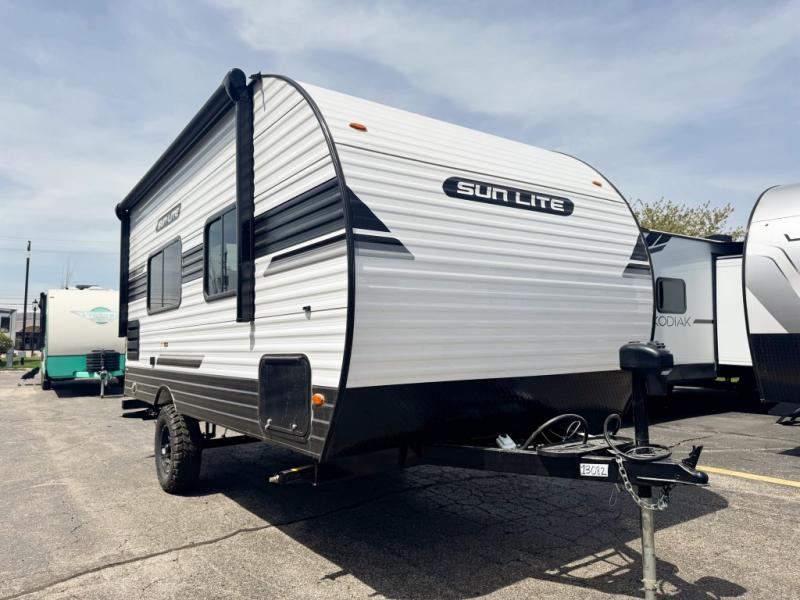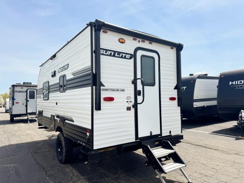 You can trust the build and enjoy your experience with any one of these Sunset Park RV Sun Lite travel trailers! Their aerodynamic profile is not only easy to haul, but also saves on fuel. They are built to withstand years of traveling even though they are lightweight with a diamond plate rock guard, a one piece PVC roof membrane, Dexter Spring-Leaf axles, and tinted safety glass windows. Some comfort standards you are sure to enjoy are the two-burner stove top range with hood, light and fan, plus the refrigerator and microwave, and an outside shower to help keep the dirt outdoors where it belongs.