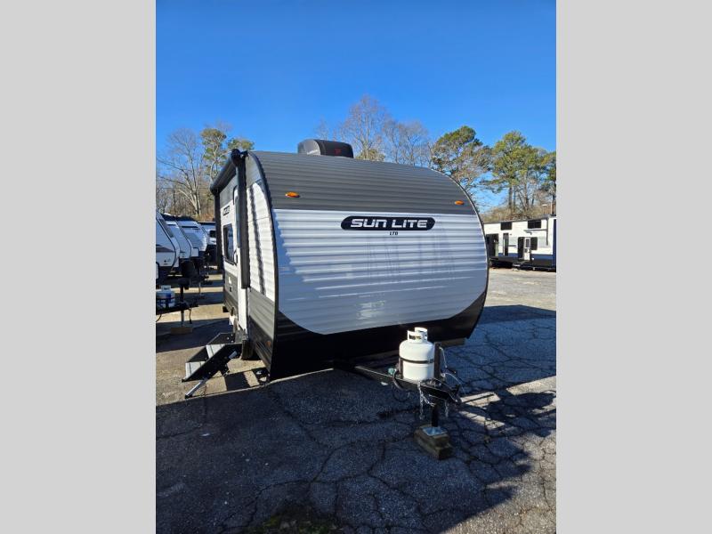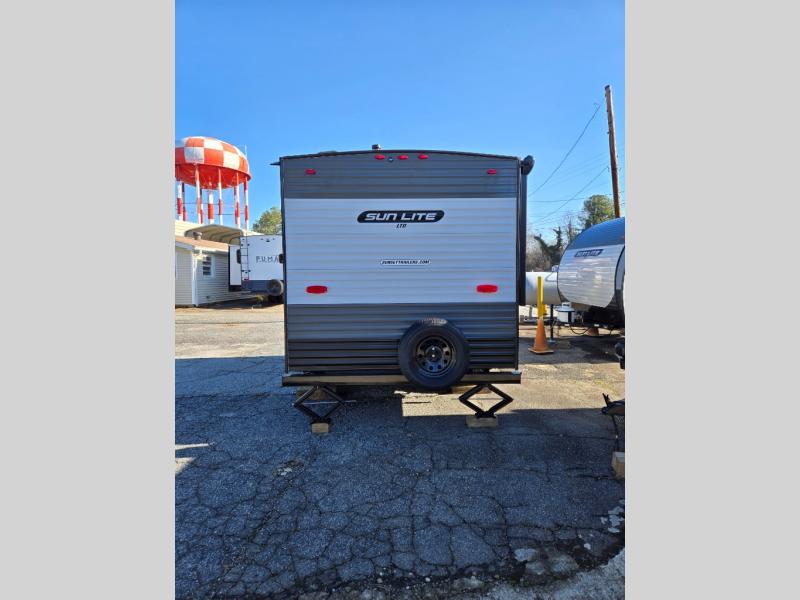 Each Sun Lite LTD travel trailer by Sunset Park RV is made with flexibility in mind. These lightweight models weigh under 3,000 lbs. for easy towing, and they offer best-in class interior storage for all your belongings. There are wood framed sidewalls, .024" aluminum siding, plus 3/8" fully walkable roof decking for added durability. The spring-leaf Dexter axles and radial tires will make towing easier than ever, and the front and rear stabilizer jacks will provide a secure foundation when you're set up at the campground. A 100W solar kit with a controller is also included, along with a 20 lb. LP tank, and a power awning for protection against the elements. Inside, you'll find a power vent in the bathroom, LED lights, USB ports, and cable/satellite hookups. And the LTD Appliance Package also comes standard with a 12V refrigerator, a two burner stove, a DSI gas water heater, plus a 5k BTU A/C and a 16k BTU furnace!