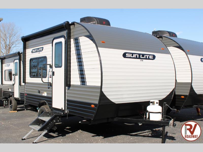 Each Sun Lite LTD travel trailer by Sunset Park RV is made with flexibility in mind. These lightweight models weigh under 3,000 lbs. for easy towing, and they offer best-in class interior storage for all your belongings. There are wood framed sidewalls, .024" aluminum siding, plus 3/8" fully walkable roof decking for added durability. The spring-leaf Dexter axles and radial tires will make towing easier than ever, and the front and rear stabilizer jacks will provide a secure foundation when you're set up at the campground. A 100W solar kit with a controller is also included, along with a 20 lb. LP tank, and a power awning for protection against the elements. Inside, you'll find a power vent in the bathroom, LED lights, USB ports, and cable/satellite hookups. And the LTD Appliance Package also comes standard with a 12V refrigerator, a two burner stove, a DSI gas water heater, plus a 5k BTU A/C and a 16k BTU furnace!