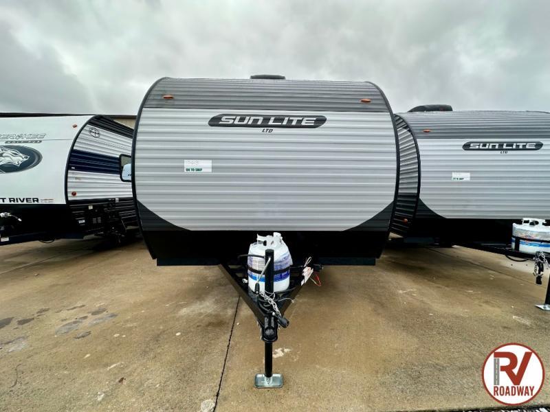 Each Sun Lite LTD travel trailer by Sunset Park RV is made with flexibility in mind. These lightweight models weigh under 3,000 lbs. for easy towing, and they offer best-in class interior storage for all your belongings. There are wood framed sidewalls, .024" aluminum siding, plus 3/8" fully walkable roof decking for added durability. The spring-leaf Dexter axles and radial tires will make towing easier than ever, and the front and rear stabilizer jacks will provide a secure foundation when you're set up at the campground. A 100W solar kit with a controller is also included, along with a 20 lb. LP tank, and a power awning for protection against the elements. Inside, you'll find a power vent in the bathroom, LED lights, USB ports, and cable/satellite hookups. And the LTD Appliance Package also comes standard with a 12V refrigerator, a two burner stove, a DSI gas water heater, plus a 5k BTU A/C and a 16k BTU furnace!