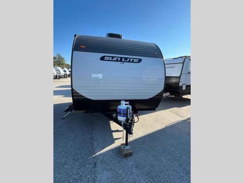 Each Sun Lite LTD travel trailer by Sunset Park RV is made with flexibility in mind. These lightweight models weigh under 3,000 lbs. for easy towing, and they offer best-in class interior storage for all your belongings. There are wood framed sidewalls, .024" aluminum siding, plus 3/8" fully walkable roof decking for added durability. The spring-leaf Dexter axles and radial tires will make towing easier than ever, and the front and rear stabilizer jacks will provide a secure foundation when you're set up at the campground. A 100W solar kit with a controller is also included, along with a 20 lb. LP tank, and a power awning for protection against the elements. Inside, you'll find a power vent in the bathroom, LED lights, USB ports, and cable/satellite hookups. And the LTD Appliance Package also comes standard with a 12V refrigerator, a two burner stove, a DSI gas water heater, plus a 5k BTU A/C and a 16k BTU furnace!