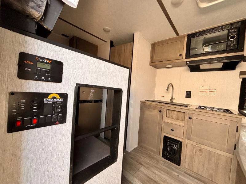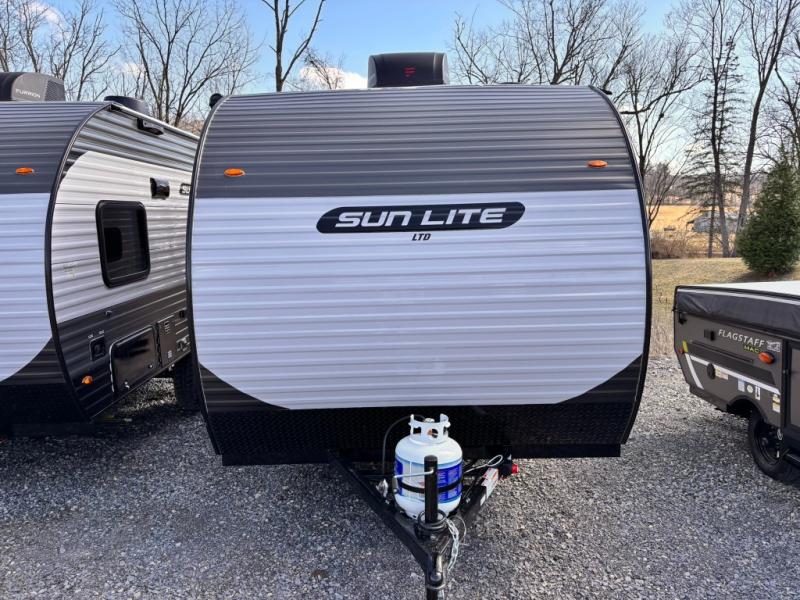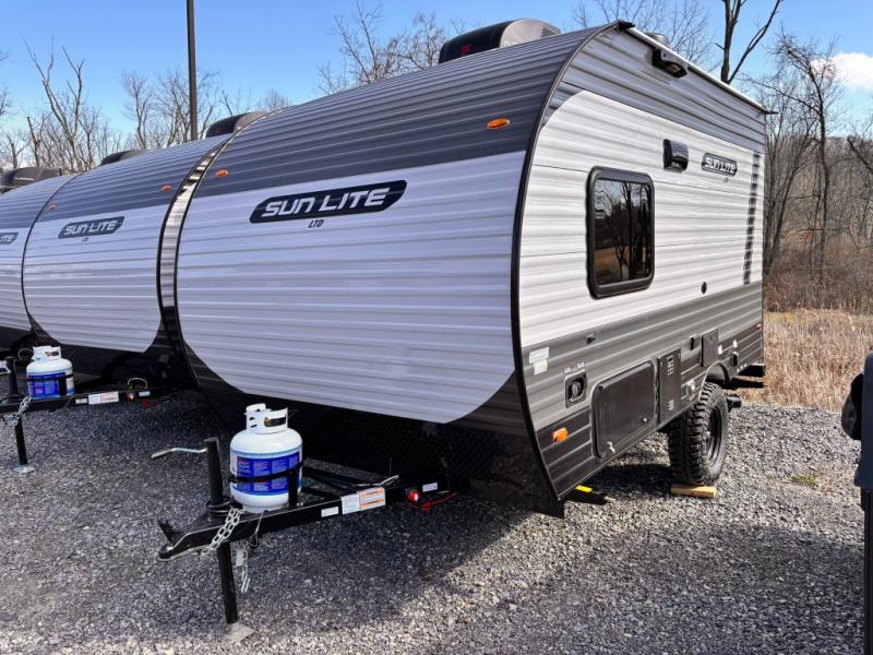 Each Sun Lite LTD travel trailer by Sunset Park RV is made with flexibility in mind. These lightweight models weigh under 3,000 lbs. for easy towing, and they offer best-in class interior storage for all your belongings. There are wood framed sidewalls, .024" aluminum siding, plus 3/8" fully walkable roof decking for added durability. The spring-leaf Dexter axles and radial tires will make towing easier than ever, and the front and rear stabilizer jacks will provide a secure foundation when you're set up at the campground. A 100W solar kit with a controller is also included, along with a 20 lb. LP tank, and a power awning for protection against the elements. Inside, you'll find a power vent in the bathroom, LED lights, USB ports, and cable/satellite hookups. And the LTD Appliance Package also comes standard with a 12V refrigerator, a two burner stove, a DSI gas water heater, plus a 5k BTU A/C and a 16k BTU furnace!