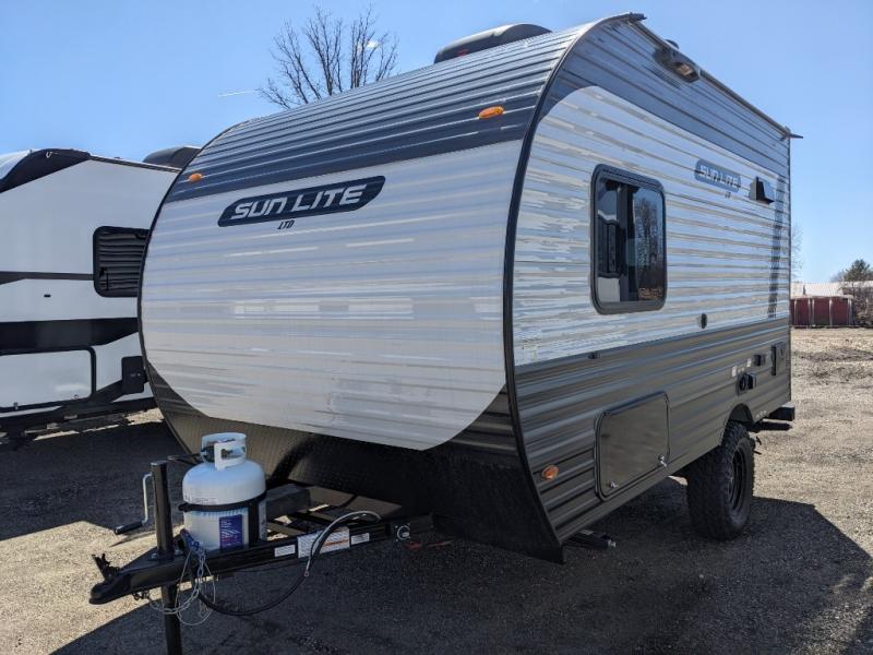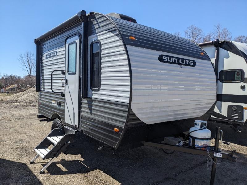 Each Sun Lite LTD travel trailer by Sunset Park RV is made with flexibility in mind. These lightweight models weigh under 3,000 lbs. for easy towing, and they offer best-in class interior storage for all your belongings. There are wood framed sidewalls, .024" aluminum siding, plus 3/8" fully walkable roof decking for added durability. The spring-leaf Dexter axles and radial tires will make towing easier than ever, and the front and rear stabilizer jacks will provide a secure foundation when you're set up at the campground. A 100W solar kit with a controller is also included, along with a 20 lb. LP tank, and a power awning for protection against the elements. Inside, you'll find a power vent in the bathroom, LED lights, USB ports, and cable/satellite hookups. And the LTD Appliance Package also comes standard with a 12V refrigerator, a two burner stove, a DSI gas water heater, plus a 5k BTU A/C and a 16k BTU furnace!