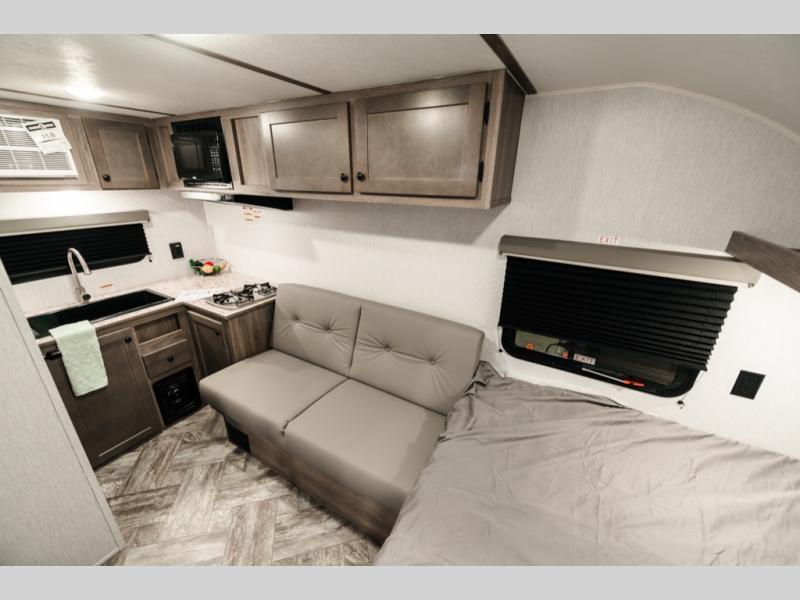 Each Sun Lite LTD travel trailer by Sunset Park RV is made with flexibility in mind. These lightweight models weigh under 3,000 lbs. for easy towing, and they offer best-in class interior storage for all your belongings. There are wood framed sidewalls, .024" aluminum siding, plus 3/8" fully walkable roof decking for added durability. The spring-leaf Dexter axles and radial tires will make towing easier than ever, and the front and rear stabilizer jacks will provide a secure foundation when you're set up at the campground. A 100W solar kit with a controller is also included, along with a 20 lb. LP tank, and a power awning for protection against the elements. Inside, you'll find a power vent in the bathroom, LED lights, USB ports, and cable/satellite hookups. And the LTD Appliance Package also comes standard with a 12V refrigerator, a two burner stove, a DSI gas water heater, plus a 5k BTU A/C and a 16k BTU furnace!