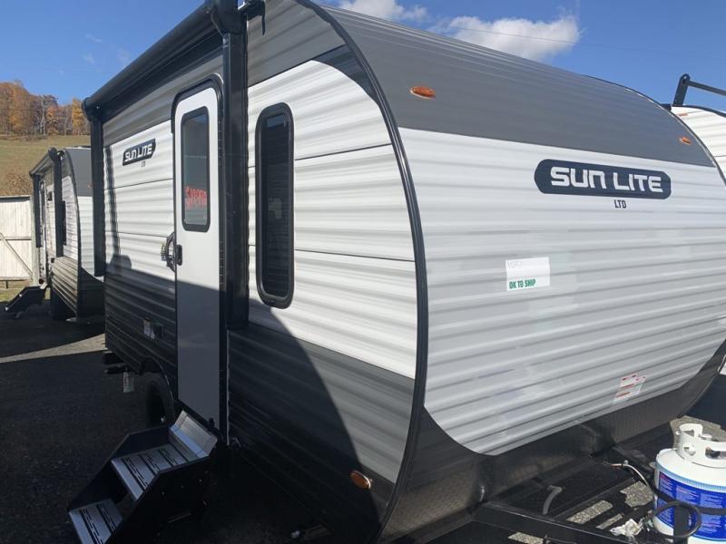 Each Sun Lite LTD travel trailer by Sunset Park RV is made with flexibility in mind. These lightweight models weigh under 3,000 lbs. for easy towing, and they offer best-in class interior storage for all your belongings. There are wood framed sidewalls, .024" aluminum siding, plus 3/8" fully walkable roof decking for added durability. The spring-leaf Dexter axles and radial tires will make towing easier than ever, and the front and rear stabilizer jacks will provide a secure foundation when you're set up at the campground. A 100W solar kit with a controller is also included, along with a 20 lb. LP tank, and a power awning for protection against the elements. Inside, you'll find a power vent in the bathroom, LED lights, USB ports, and cable/satellite hookups. And the LTD Appliance Package also comes standard with a 12V refrigerator, a two burner stove, a DSI gas water heater, plus a 5k BTU A/C and a 16k BTU furnace!