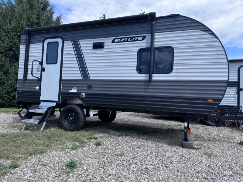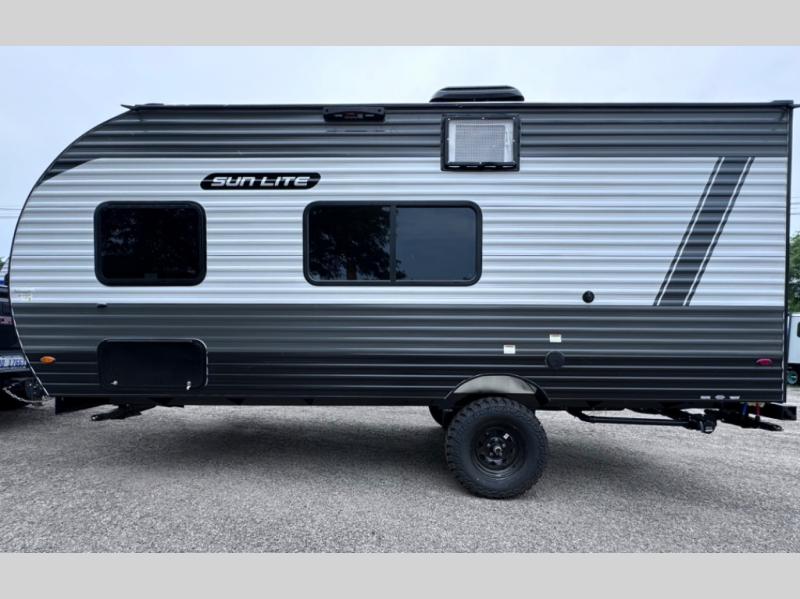 Each Sun Lite LTD travel trailer by Sunset Park RV is made with flexibility in mind. These lightweight models weigh under 3,000 lbs. for easy towing, and they offer best-in class interior storage for all your belongings. There are wood framed sidewalls, .024" aluminum siding, plus 3/8" fully walkable roof decking for added durability. The spring-leaf Dexter axles and radial tires will make towing easier than ever, and the front and rear stabilizer jacks will provide a secure foundation when you're set up at the campground. A 100W solar kit with a controller is also included, along with a 20 lb. LP tank, and a power awning for protection against the elements. Inside, you'll find a power vent in the bathroom, LED lights, USB ports, and cable/satellite hookups. And the LTD Appliance Package also comes standard with a 12V refrigerator, a two burner stove, a DSI gas water heater, plus a 5k BTU A/C and a 16k BTU furnace!