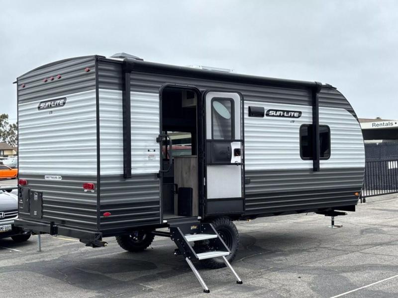 Each Sun Lite LTD travel trailer by Sunset Park RV is made with flexibility in mind. These lightweight models weigh under 3,000 lbs. for easy towing, and they offer best-in class interior storage for all your belongings. There are wood framed sidewalls, .024" aluminum siding, plus 3/8" fully walkable roof decking for added durability. The spring-leaf Dexter axles and radial tires will make towing easier than ever, and the front and rear stabilizer jacks will provide a secure foundation when you're set up at the campground. A 100W solar kit with a controller is also included, along with a 20 lb. LP tank, and a power awning for protection against the elements. Inside, you'll find a power vent in the bathroom, LED lights, USB ports, and cable/satellite hookups. And the LTD Appliance Package also comes standard with a 12V refrigerator, a two burner stove, a DSI gas water heater, plus a 5k BTU A/C and a 16k BTU furnace!