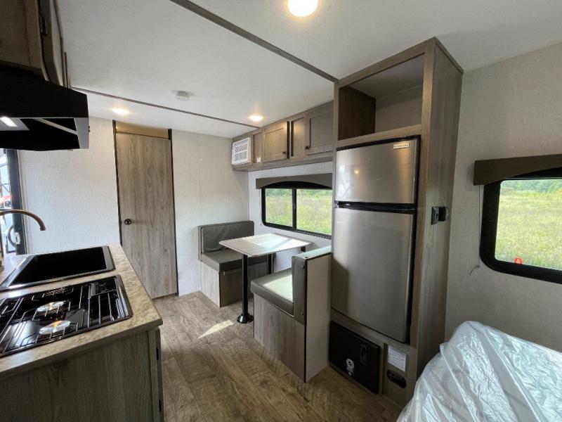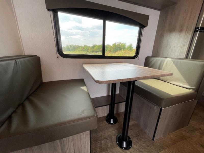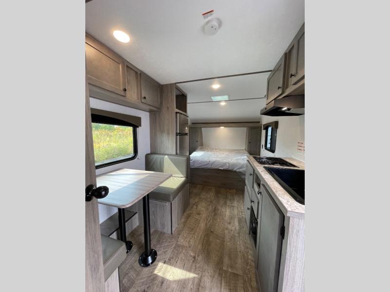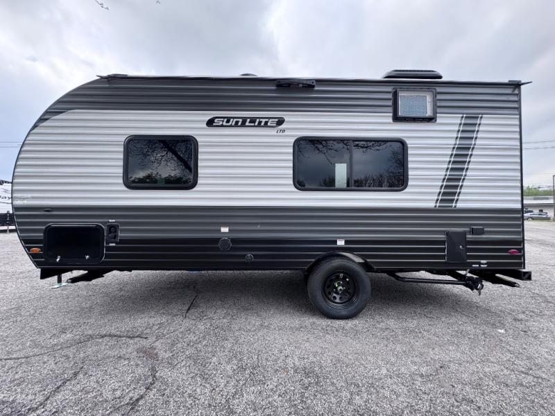 The perfect couple's trailer is waiting for you with this Sun Lite LTD! The front RV queen bed will provide a great night's rest after a day of hiking outdoors, and the full rear bath will let you clean up each day. There is a booth dinette where you can dine at each day, and even let another guest sleep over if needed. You'll also find a two burner stove to make meals, a double sink to clean up, and a 4.3 cu. ft. 12V refrigerator for leftovers! What's not to love about this travel trailer?!