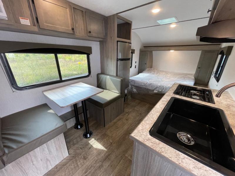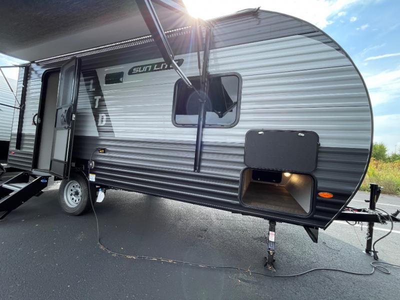Each Sun Lite LTD travel trailer by Sunset Park RV is made with flexibility in mind. These lightweight models weigh under 3,000 lbs. for easy towing, and they offer best-in class interior storage for all your belongings. There are wood framed sidewalls, .024" aluminum siding, plus 3/8" fully walkable roof decking for added durability. The spring-leaf Dexter axles and radial tires will make towing easier than ever, and the front and rear stabilizer jacks will provide a secure foundation when you're set up at the campground. A 100W solar kit with a controller is also included, along with a 20 lb. LP tank, and a power awning for protection against the elements. Inside, you'll find a power vent in the bathroom, LED lights, USB ports, and cable/satellite hookups. And the LTD Appliance Package also comes standard with a 12V refrigerator, a two burner stove, a DSI gas water heater, plus a 5k BTU A/C and a 16k BTU furnace!
