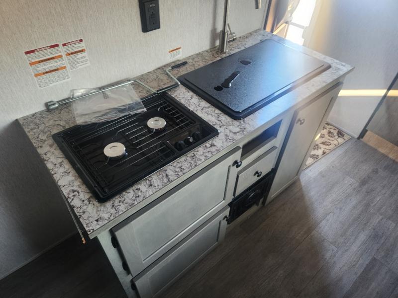 Each Sun Lite LTD travel trailer by Sunset Park RV is made with flexibility in mind. These lightweight models weigh under 3,000 lbs. for easy towing, and they offer best-in class interior storage for all your belongings. There are wood framed sidewalls, .024" aluminum siding, plus 3/8" fully walkable roof decking for added durability. The spring-leaf Dexter axles and radial tires will make towing easier than ever, and the front and rear stabilizer jacks will provide a secure foundation when you're set up at the campground. A 100W solar kit with a controller is also included, along with a 20 lb. LP tank, and a power awning for protection against the elements. Inside, you'll find a power vent in the bathroom, LED lights, USB ports, and cable/satellite hookups. And the LTD Appliance Package also comes standard with a 12V refrigerator, a two burner stove, a DSI gas water heater, plus a 5k BTU A/C and a 16k BTU furnace!