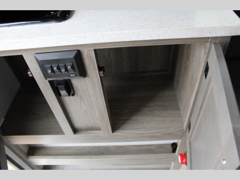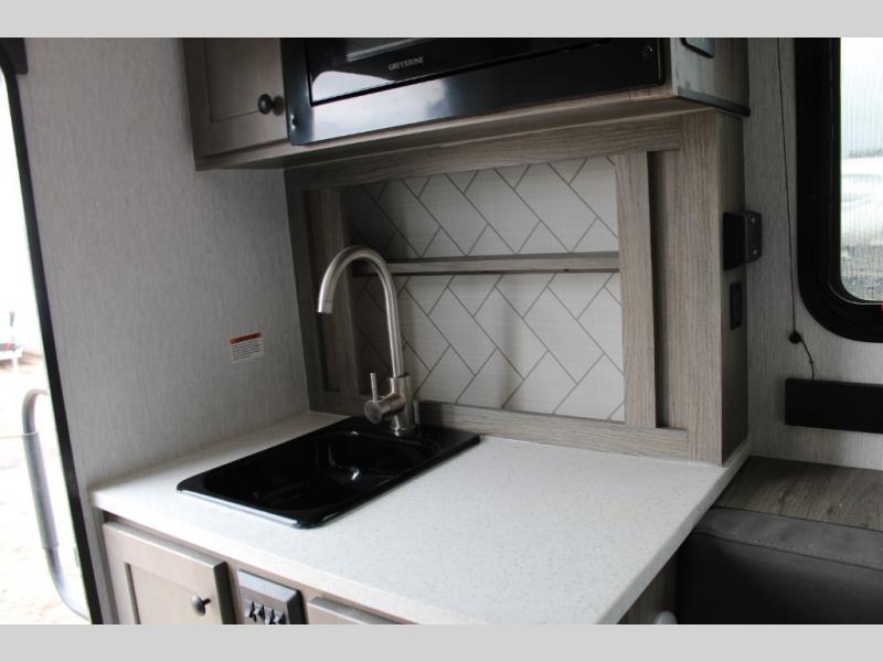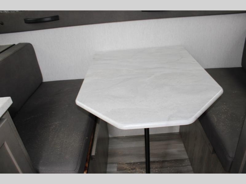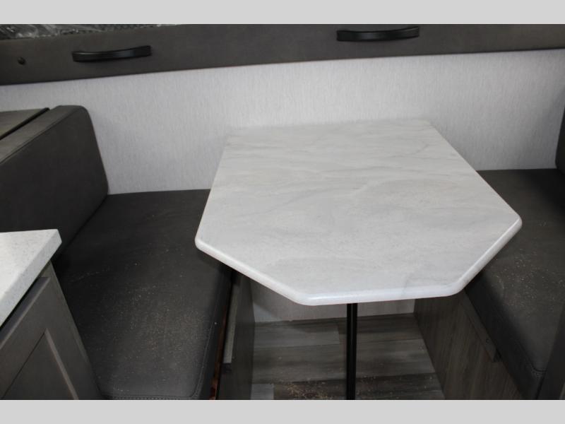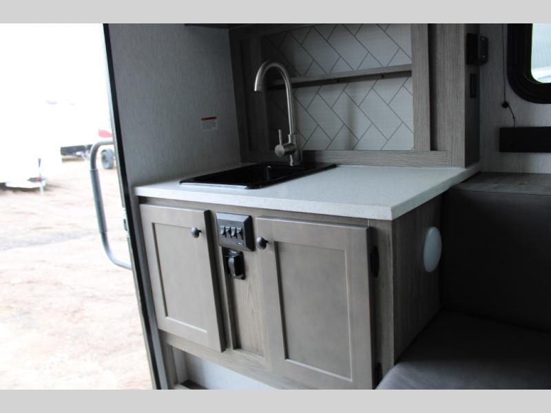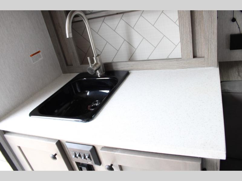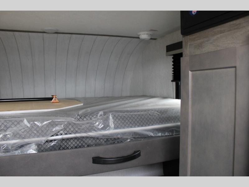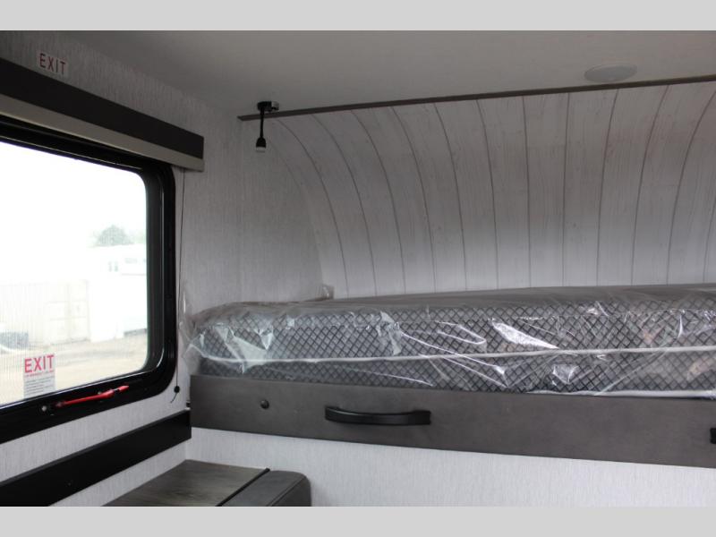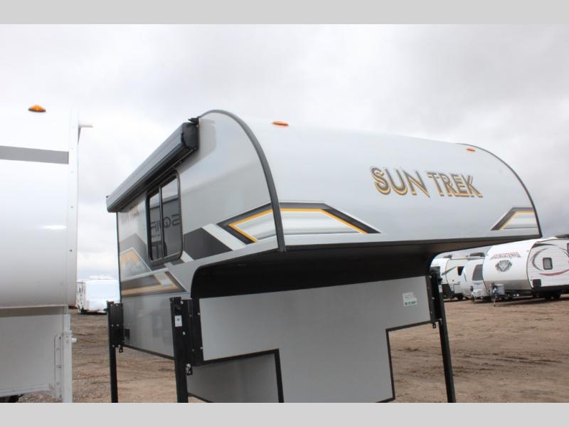 With any Sun Trek truck camper by Sunset Park RV, you will find a durable camper made to last thanks to the vacuum bonded laminated sidewalls and one-piece PVC roof membrane. You will also appreciate your choice of white or gray sidewalls, plus there are manual jacks outside and a 100-watt solar panel for some off-grid power. Inside, a power roof vent will help keep air moving, and you can choose an optional roof A/C if you enjoy camping in the summertime. Additional interior comforts include LED lights, tinted windows and solid surface countertops with a sink cover!