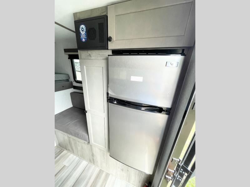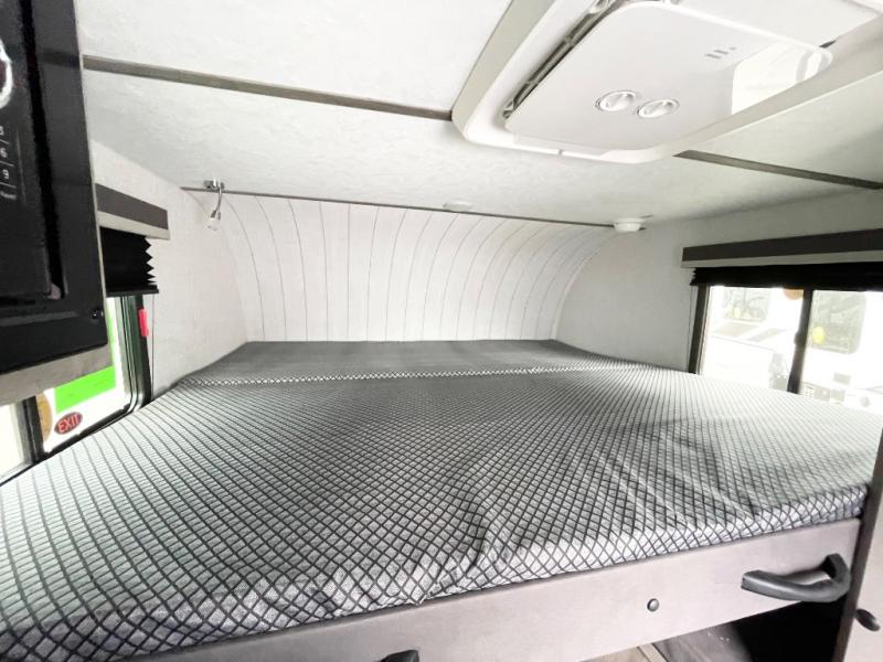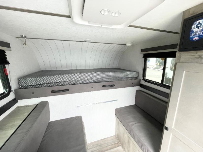 With any Sun Trek truck camper by Sunset Park RV, you will find a durable camper made to last thanks to the vacuum bonded laminated sidewalls and one-piece PVC roof membrane. You will also appreciate your choice of white or gray sidewalls, plus there are manual jacks outside and a 100-watt solar panel for some off-grid power. Inside, a power roof vent will help keep air moving, and you can choose an optional roof A/C if you enjoy camping in the summertime. Additional interior comforts include LED lights, tinted windows and solid surface countertops with a sink cover!