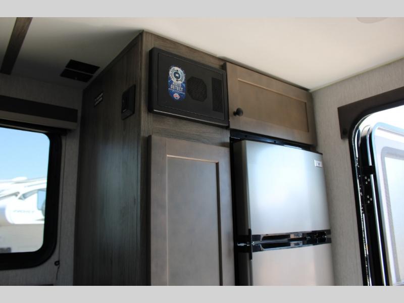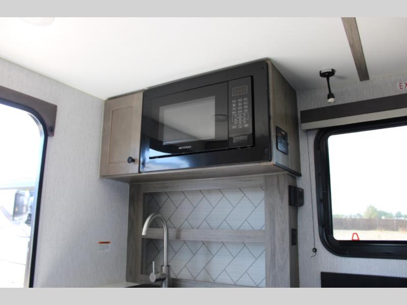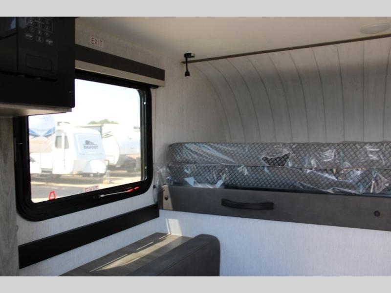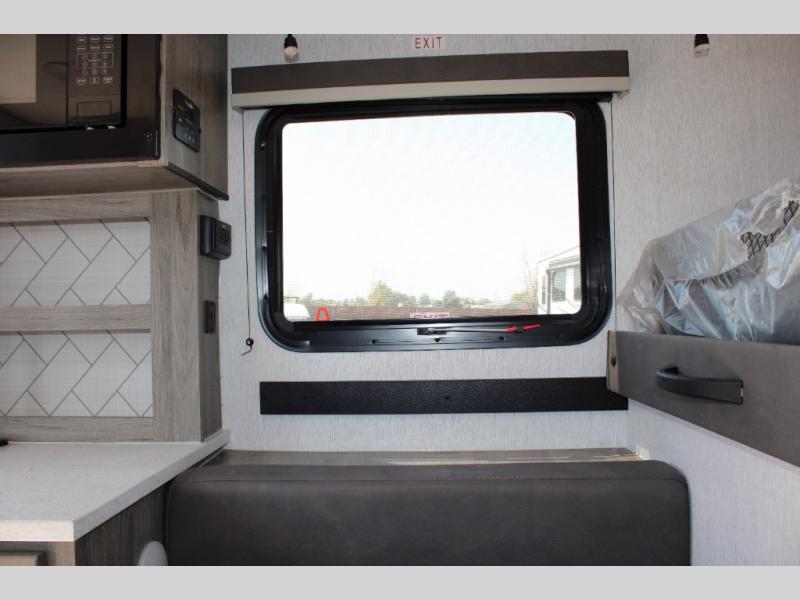 With any Sun Trek truck camper by Sunset Park RV, you will find a durable camper made to last thanks to the vacuum bonded laminated sidewalls and one-piece PVC roof membrane. You will also appreciate your choice of white or gray sidewalls, plus there are manual jacks outside and a 100-watt solar panel for some off-grid power. Inside, a power roof vent will help keep air moving, and you can choose an optional roof A/C if you enjoy camping in the summertime. Additional interior comforts include LED lights, tinted windows and solid surface countertops with a sink cover!