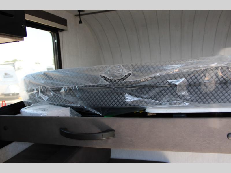You're sure to find comfort in this truck camper for two! The front bed provides a great night's rest, and there is added seating at the foot of the bed and along the side. This unit also includes counter space, a sink to wash up and a 4.5 12V refrigerator to keep food fresh.