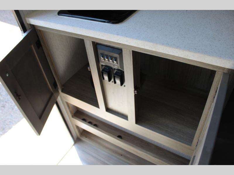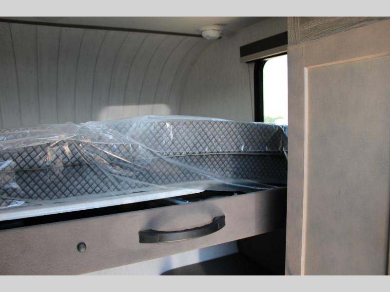 With any Sun Trek truck camper by Sunset Park RV, you will find a durable camper made to last thanks to the vacuum bonded laminated sidewalls and one-piece PVC roof membrane. You will also appreciate your choice of white or gray sidewalls, plus there are manual jacks outside and a 100-watt solar panel for some off-grid power. Inside, a power roof vent will help keep air moving, and you can choose an optional roof A/C if you enjoy camping in the summertime. Additional interior comforts include LED lights, tinted windows and solid surface countertops with a sink cover!