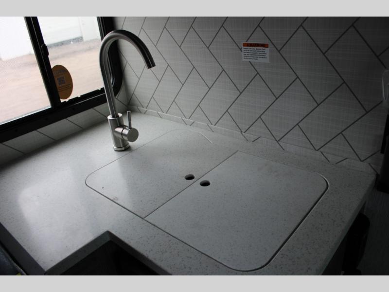 With any Sun Trek truck camper by Sunset Park RV, you will find a durable camper made to last thanks to the vacuum bonded laminated sidewalls and one-piece PVC roof membrane. You will also appreciate your choice of white or gray sidewalls, plus there are manual jacks outside and a 100-watt solar panel for some off-grid power. Inside, a power roof vent will help keep air moving, and you can choose an optional roof A/C if you enjoy camping in the summertime. Additional interior comforts include LED lights, tinted windows and solid surface countertops with a sink cover!
