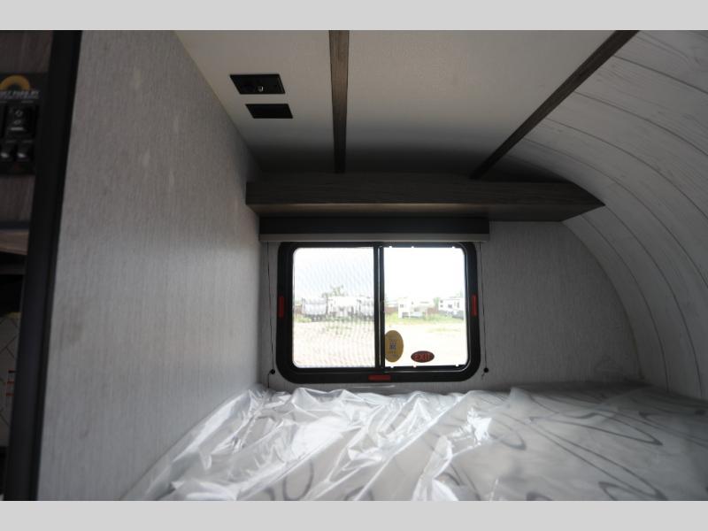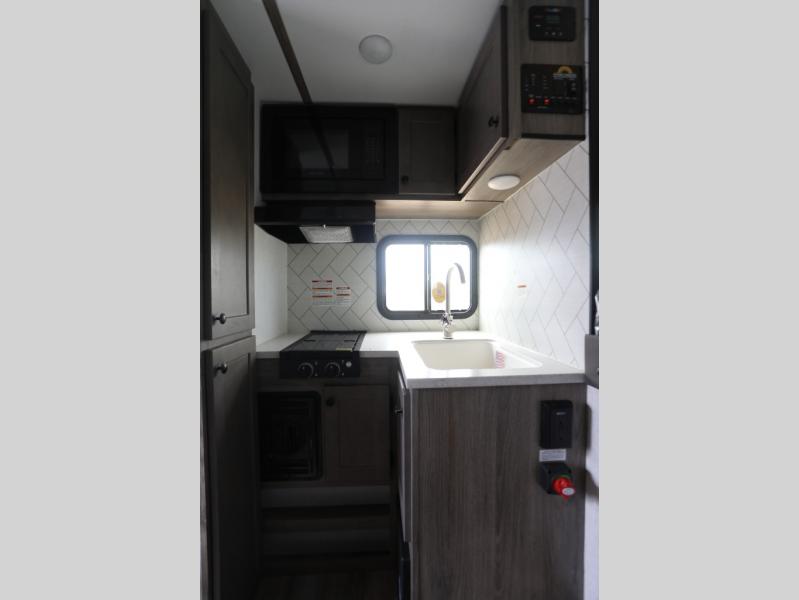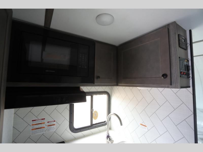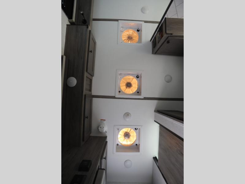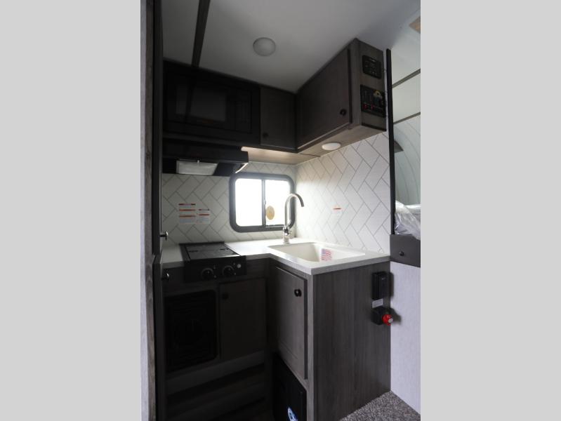 With any Sun Trek truck camper by Sunset Park RV, you will find a durable camper made to last thanks to the vacuum bonded laminated sidewalls and one-piece PVC roof membrane. You will also appreciate your choice of white or gray sidewalls, plus there are manual jacks outside and a 100-watt solar panel for some off-grid power. Inside, a power roof vent will help keep air moving, and you can choose an optional roof A/C if you enjoy camping in the summertime. Additional interior comforts include LED lights, tinted windows and solid surface countertops with a sink cover!