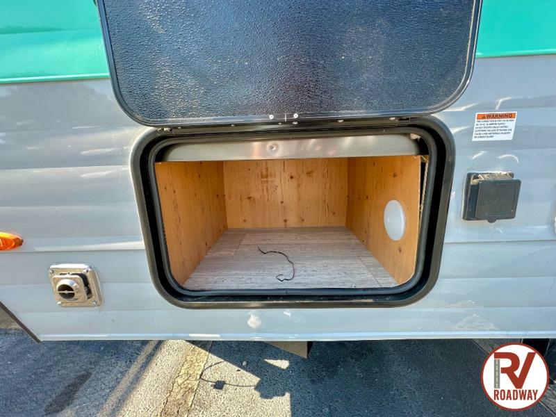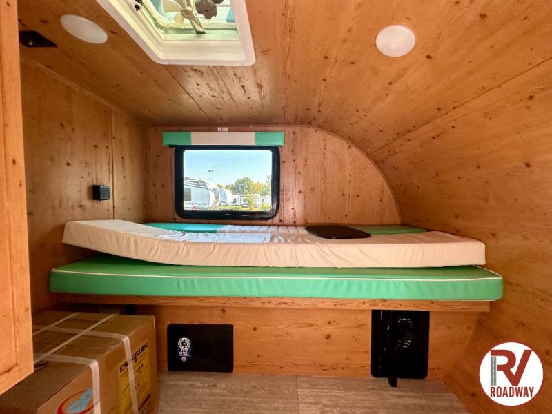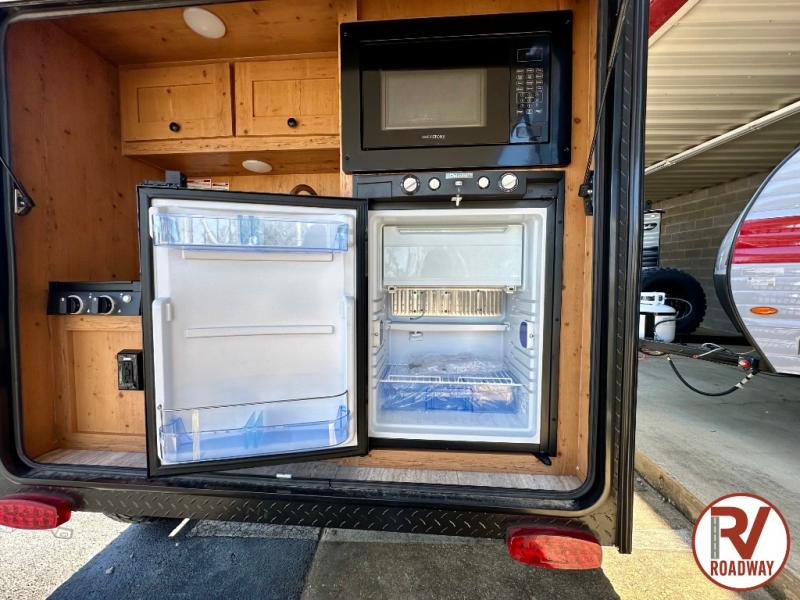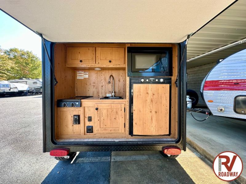 This Sunray travel trailer with its 12' length and 1,320-LB dry weight, is simple to navigate. You have most of the basic essentials without needing to tow all of the extra weight. There is an outdoor kitchen that comes with a two-burner stove top, a refrigerator, and a microwave so that you can cook dinner without having to start a fire. You will have an outside shower that you can use for various purposes, like rinsing off your equipment, filling a bucket with water, or hosing down your muddy puppy, and there are USB ports and a Winegard HDTV antenna to keep you modern.