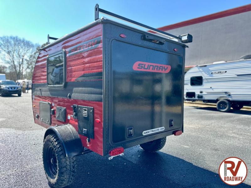 The Sunray travel trailer from Sunset Park RV is an investment that you'll be able to enjoy for many years to come! These compact trailers are effortless to tow, so you won't need fancy equipment to have fun at the campsite. The Sunray is built upon a powder-coated steel chassis, and it has a diamond plate rock guard to keep the front end protected from debris. You'll find radial tires, a spare tire with carrier where available, and .024" aluminum siding on each model. You'll be able to remain comfortable when staying indoors thanks to the A/C and furnace. Another way that your camping experience will be elevated is with the Confidence Package which comes with a 6” lift with off-road tires, black steel rims, a roof rack, and more!