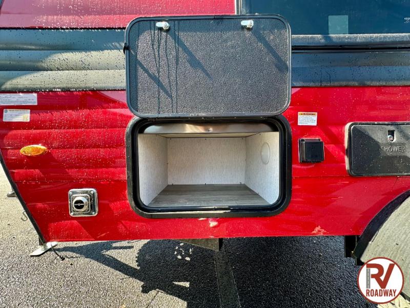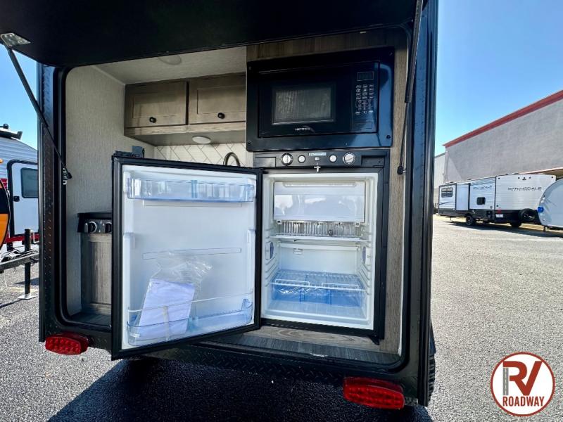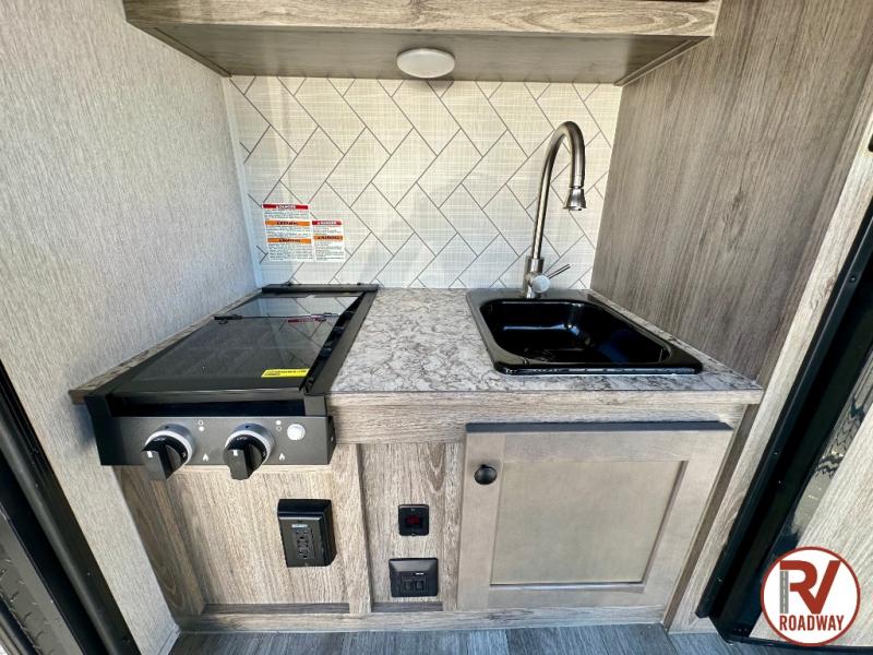This Sunray travel trailer with its 12' length and 1,320-LB dry weight, is simple to navigate. You have most of the basic essentials without needing to tow all of the extra weight. There is an outdoor kitchen that comes with a two-burner stove top, a refrigerator, and a microwave so that you can cook dinner without having to start a fire. You will have an outside shower that you can use for various purposes, like rinsing off your equipment, filling a bucket with water, or hosing down your muddy puppy, and there are USB ports and a Winegard HDTV antenna to keep you modern.