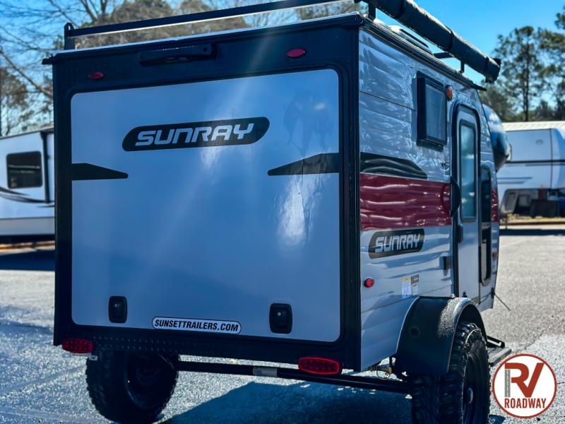 The Sunray travel trailer from Sunset Park RV is an investment that you'll be able to enjoy for many years to come! These compact trailers are effortless to tow, so you won't need fancy equipment to have fun at the campsite. The Sunray is built upon a powder-coated steel chassis, and it has a diamond plate rock guard to keep the front end protected from debris. You'll find radial tires, a spare tire with carrier where available, and .024" aluminum siding on each model. You'll be able to remain comfortable when staying indoors thanks to the A/C and furnace. Another way that your camping experience will be elevated is with the Confidence Package which comes with a 6” lift with off-road tires, black steel rims, a roof rack, and more!