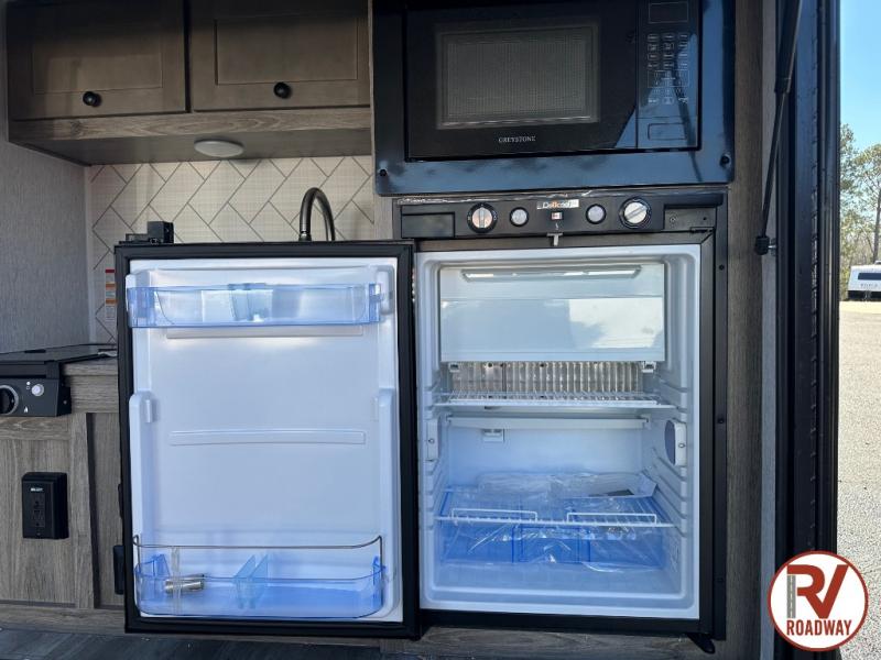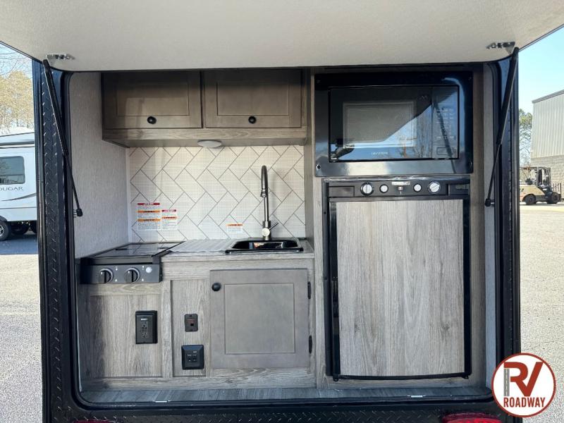 This Sunray travel trailer with its 12' length and 1,320-LB dry weight, is simple to navigate. You have most of the basic essentials without needing to tow all of the extra weight. There is an outdoor kitchen that comes with a two-burner stove top, a refrigerator, and a microwave so that you can cook dinner without having to start a fire. You will have an outside shower that you can use for various purposes, like rinsing off your equipment, filling a bucket with water, or hosing down your muddy puppy, and there are USB ports and a Winegard HDTV antenna to keep you modern.