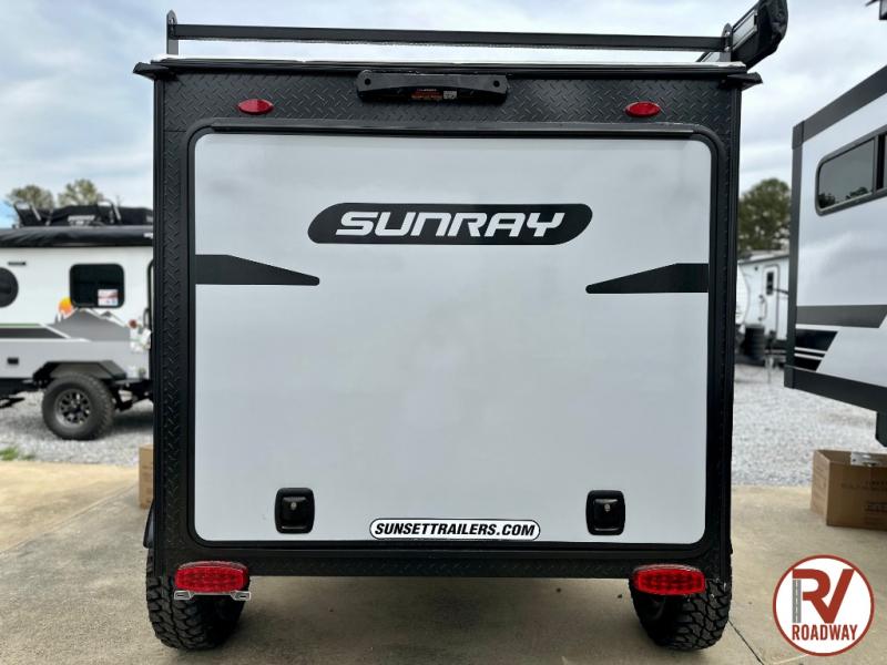 The Sunray travel trailer from Sunset Park RV is an investment that you'll be able to enjoy for many years to come! These compact trailers are effortless to tow, so you won't need fancy equipment to have fun at the campsite. The Sunray is built upon a powder-coated steel chassis, and it has a diamond plate rock guard to keep the front end protected from debris. You'll find radial tires, a spare tire with carrier where available, and .024" aluminum siding on each model. You'll be able to remain comfortable when staying indoors thanks to the A/C and furnace. Another way that your camping experience will be elevated is with the Confidence Package which comes with a 6” lift with off-road tires, black steel rims, a roof rack, and more!