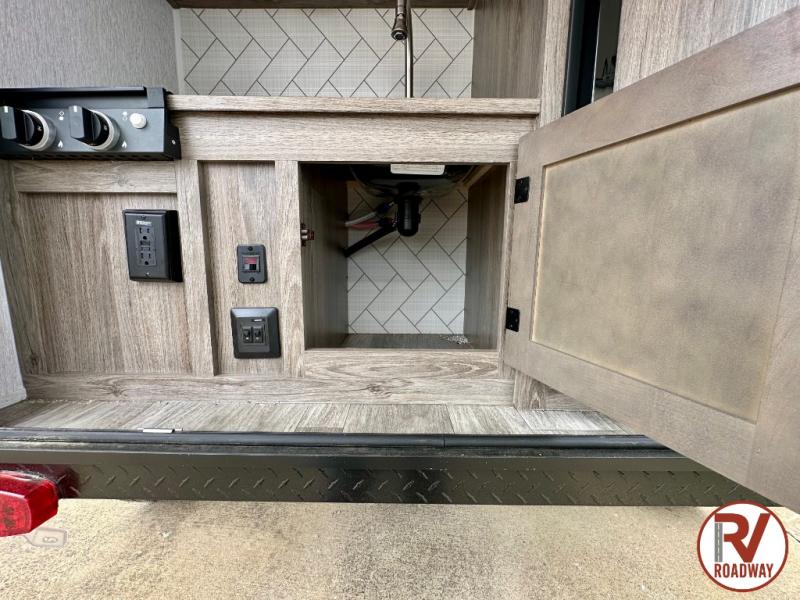 This Sunray travel trailer with its 12' length and 1,320-LB dry weight, is simple to navigate. You have most of the basic essentials without needing to tow all of the extra weight. There is an outdoor kitchen that comes with a two-burner stove top, a refrigerator, and a microwave so that you can cook dinner without having to start a fire. You will have an outside shower that you can use for various purposes, like rinsing off your equipment, filling a bucket with water, or hosing down your muddy puppy, and there are USB ports and a Winegard HDTV antenna to keep you modern.