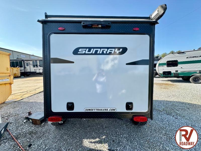 The Sunray travel trailer from Sunset Park RV is an investment that you'll be able to enjoy for many years to come! These compact trailers are effortless to tow, so you won't need fancy equipment to have fun at the campsite. The Sunray is built upon a powder-coated steel chassis, and it has a diamond plate rock guard to keep the front end protected from debris. You'll find radial tires, a spare tire with carrier where available, and .024" aluminum siding on each model. You'll be able to remain comfortable when staying indoors thanks to the A/C and furnace. Another way that your camping experience will be elevated is with the Confidence Package which comes with a 6” lift with off-road tires, black steel rims, a roof rack, and more!