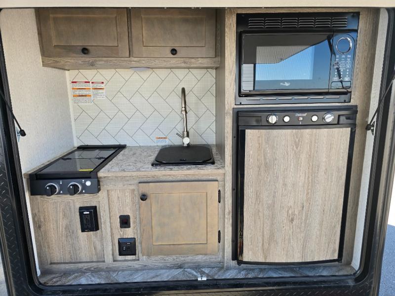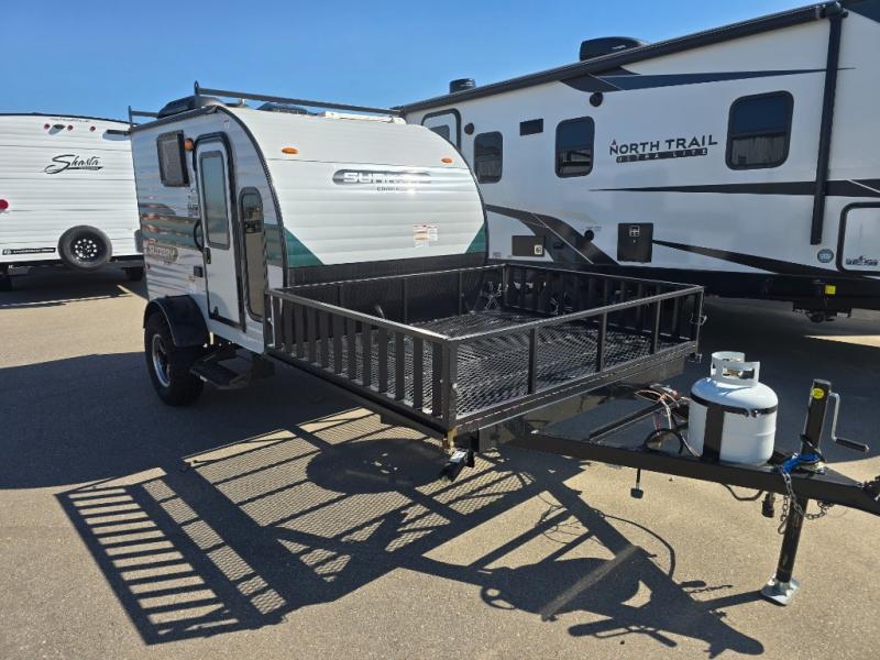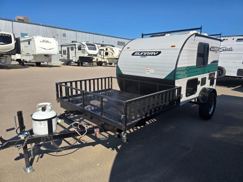 The Sunray travel trailer from Sunset Park RV is an investment that you'll be able to enjoy for many years to come! These compact trailers are effortless to tow, so you won't need fancy equipment to have fun at the campsite. The Sunray is built upon a powder-coated steel chassis, and it has a diamond plate rock guard to keep the front end protected from debris. You'll find radial tires and .024" aluminum siding on each model. You'll be able to remain comfortable when staying indoors thanks to the air conditioner and furnace, and each model has been prepped for a backup camera in order to make your maneuvering a little bit easier. Another way that your camping experience will be elevated is with the Confidence Package which comes with a 6” lift with off-road tires, black steel rims, and a roof rack.