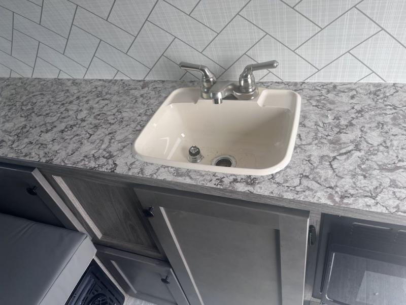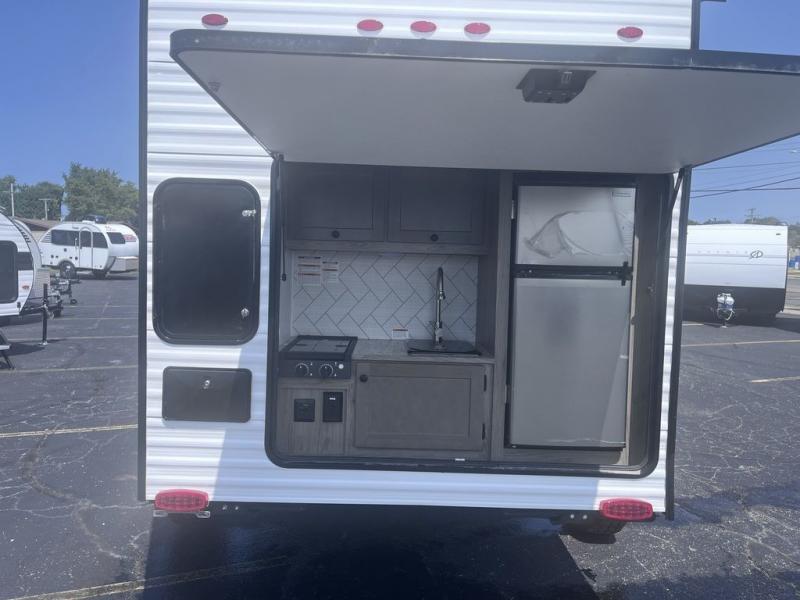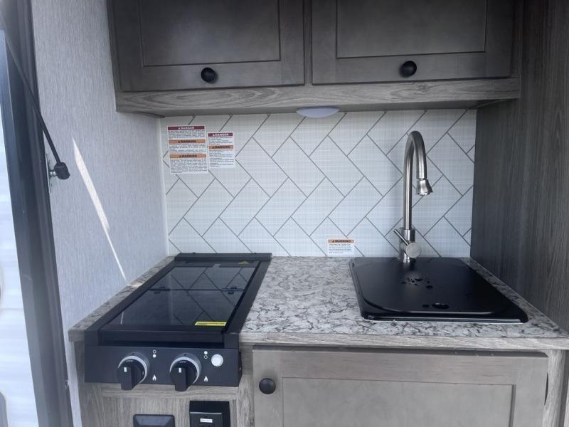 It will be amazingly easy to get to the campsite with this Sunray travel trailer! You can use the dinette during the day as a dining location and at night as a sleeping space, and the bunk above the dinette will serve as an additional sleep space for another tired traveler. Make your world-famous pancakes on the two-burner stove top outside, and spend some time washing dishes afterwards in the indoor and outdoor sink. Also on the interior, you will find a private toilet which will be ultra convenient when you wake up in the middle of the night and need to go to the bathroom. You can add the optional Sports Package featuring 14" tires instead of the off-road tires, color matching rims with Moon Caps, and Retro Decor and Diner-Style Countertops.