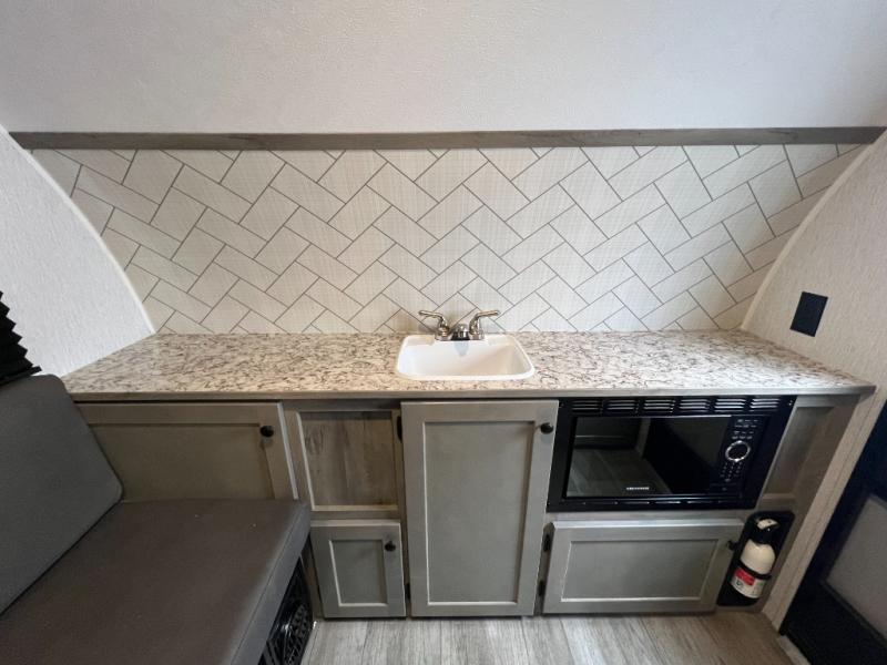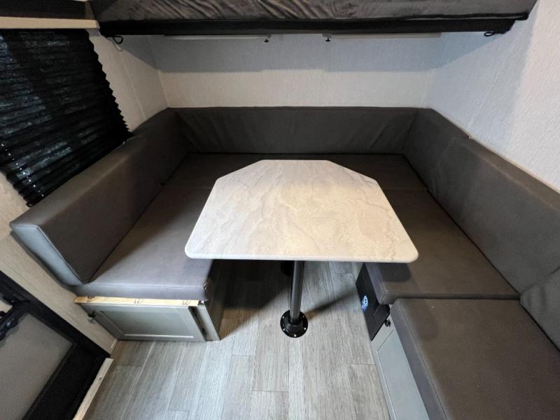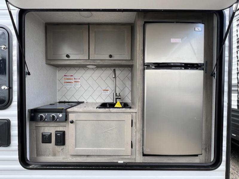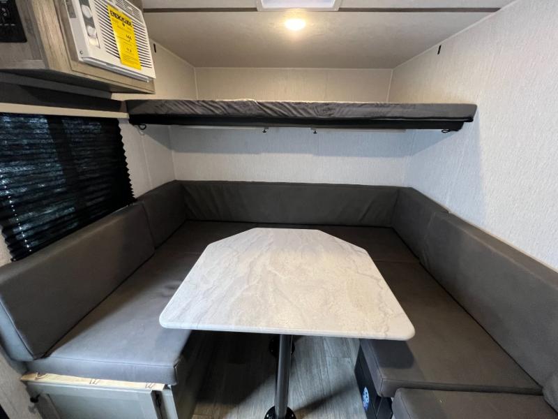 It will be amazingly easy to get to the campsite with this Sunray travel trailer! You can use the dinette during the day as a dining location and at night as a sleeping space, and the bunk above the dinette will serve as an additional sleep space for another tired traveler. Make your world-famous pancakes on the two-burner stove top outside, and spend some time washing dishes afterwards in the indoor and outdoor sink. Also on the interior, you will find a private toilet which will be ultra convenient when you wake up in the middle of the night and need to go to the bathroom. You can add the optional Sports Package featuring 14" tires instead of the off-road tires, color matching rims with Moon Caps, and Retro Decor and Diner-Style Countertops.