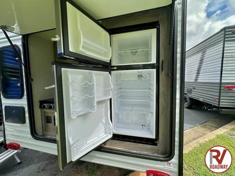 It will be amazingly easy to get to the campsite with this Sunray travel trailer! You can use the dinette during the day as a dining location and at night as a sleeping space. Make your world-famous pancakes on the two-burner stove top outside, and spend some time washing dishes afterwards in the indoor and outdoor sink. Also on the interior, you will find a private toilet which will be ultra convenient when you wake up in the middle of the night and need to go to the bathroom. You can add the optional Classic Package featuring 14" tires instead of the off-road tires, color matching rims with Moon Caps, and Retro Decor and Diner-Style Countertops.