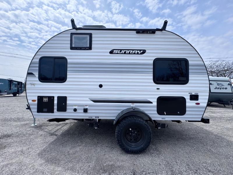 The Sunray travel trailer from Sunset Park RV is an investment that you'll be able to enjoy for many years to come! These compact trailers are effortless to tow, so you won't need fancy equipment to have fun at the campsite. The Sunray is built upon a powder-coated steel chassis, and it has a diamond plate rock guard to keep the front end protected from debris. You'll find radial tires, a spare tire with carrier, and .024" aluminum siding on each model. You'll be able to remain comfortable when staying indoors thanks to the A/C and furnace. Another way that your camping experience will be elevated is with the Confidence Package which comes with a 6” lift with off-road tires, black steel rims, a roof rack, and more!