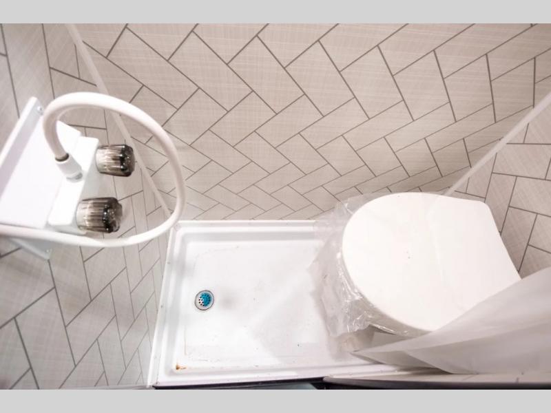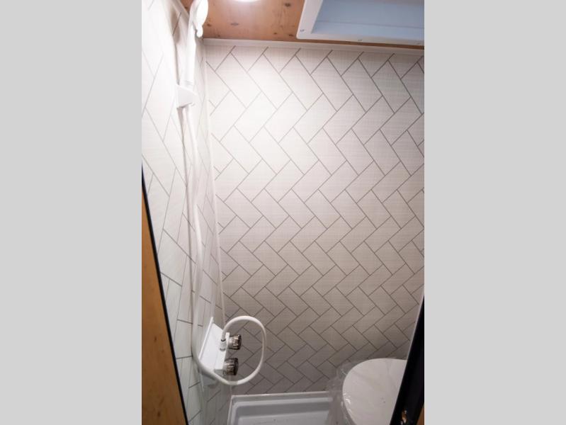 This Sunray travel trailer is the largest and most accommodating because it comes with a wet bath so that you can even take a shower in your trailer! There is a small kitchen on the interior that comes with a two-burner stove top, a refrigerator, and a microwave so that you can cook dinner without having to start a fire, and since it is indoors, you will be able to keep the bugs away while you prepare something delicious to eat. If you need to rinse off some gear, the outside shower will be especially useful, and if you need to charge your devices, use the USB ports. You will also find a Winegard HDTV antenna on this model. Add the available Classic option for 14" tires instead of the off-road version, color matching rims with Moon Caps, and Retro decor and Diner-Style countertops.