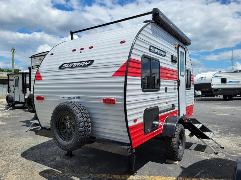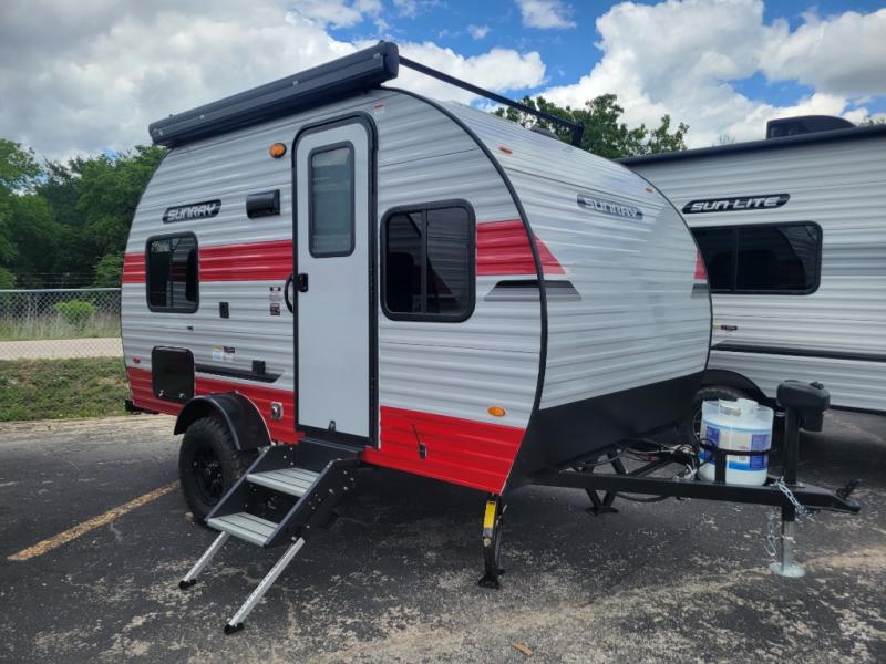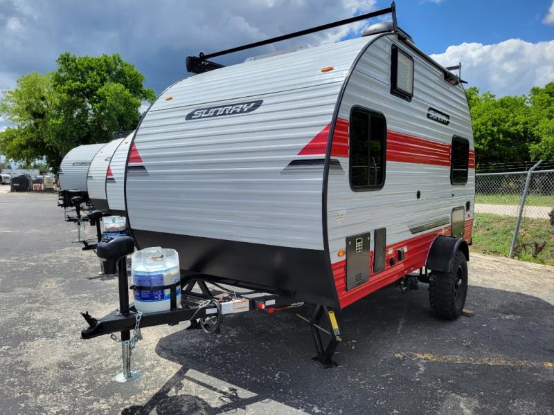 The Sunray travel trailer from Sunset Park RV is an investment that you'll be able to enjoy for many years to come! These compact trailers are effortless to tow, so you won't need fancy equipment to have fun at the campsite. The Sunray is built upon a powder-coated steel chassis, and it has a diamond plate rock guard to keep the front end protected from debris. You'll find radial tires, a spare tire with carrier, and .024" aluminum siding on each model. You'll be able to remain comfortable when staying indoors thanks to the A/C and furnace. Another way that your camping experience will be elevated is with the Confidence Package which comes with a 6” lift with off-road tires, black steel rims, a roof rack, and more!