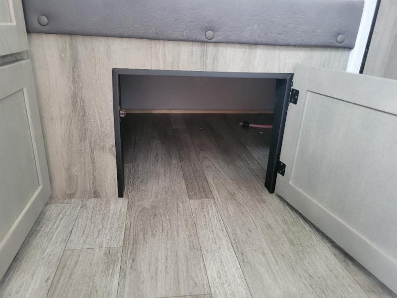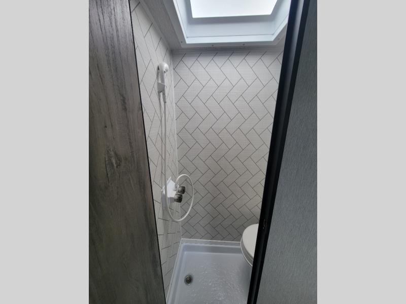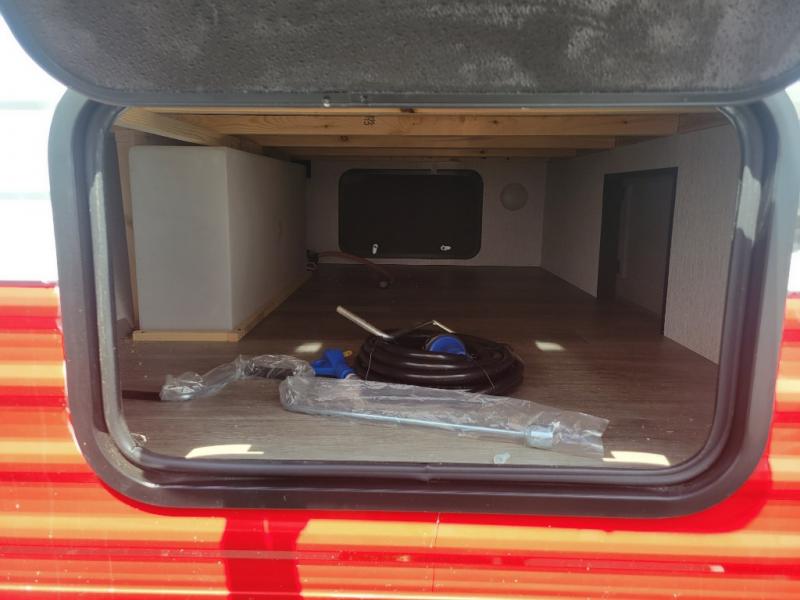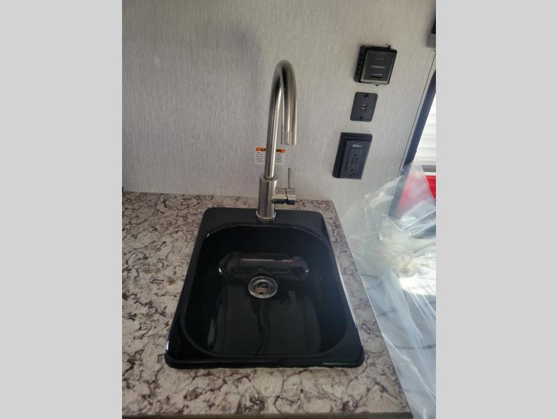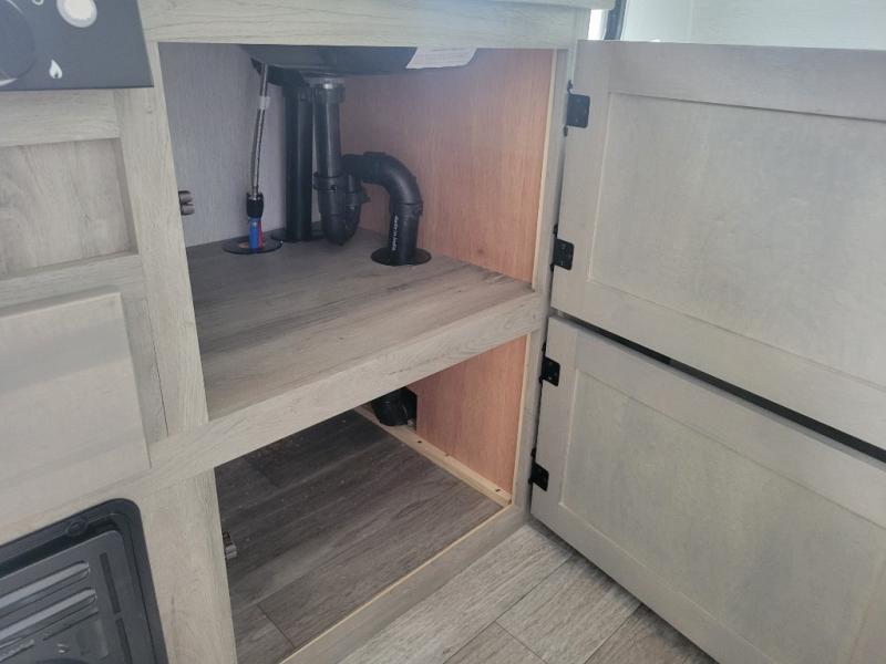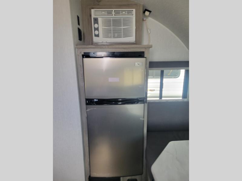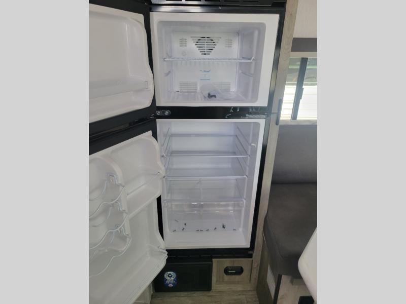 This Sunray travel trailer is the largest and most accommodating because it comes with a wet bath so that you can even take a shower in your trailer! There is a small kitchen on the interior that comes with a two-burner stove top, a refrigerator, and a microwave so that you can cook dinner without having to start a fire, and since it is indoors, you will be able to keep the bugs away while you prepare something delicious to eat. If you need to rinse off some gear, the outside shower will be especially useful, and if you need to charge your devices, use the USB ports. You will also find a Winegard HDTV antenna on this model. Add the available Classic option for 14" tires instead of the off-road version, color matching rims with Moon Caps, and Retro decor and Diner-Style countertops.