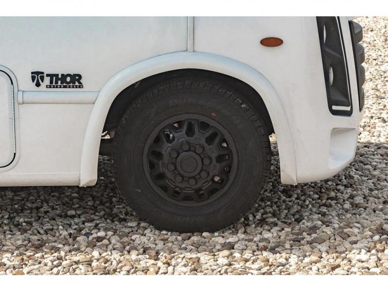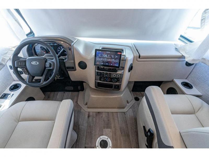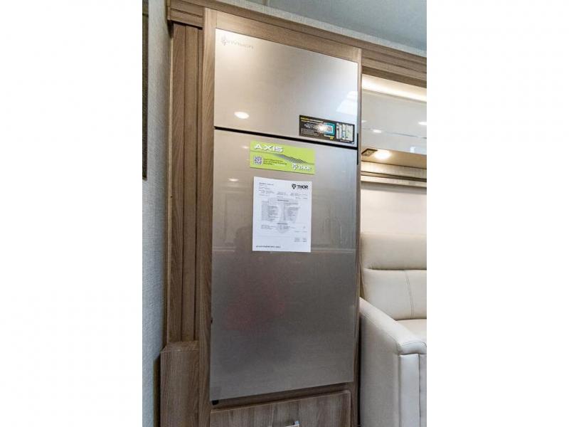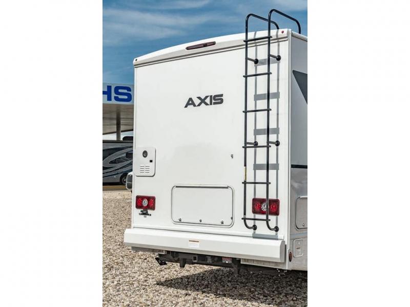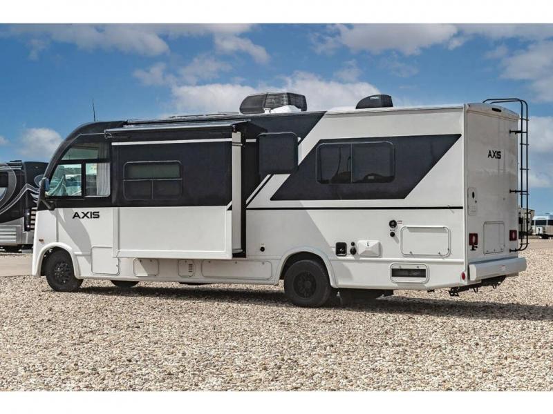 With any Axis Class A gas motorhome by Thor Motor Coach you will enjoy added technology features to make each trip enjoyable, like the RapidCamp+ multiplex lighting and systems control and the Winegard ConnecT 2.0 Wi-Fi/4G/TV antenna. Each model features heated and remote exterior mirrors with integrated side view cameras, reclining and swivel leatherette captain's chairs, and a dash workstation with 110-volt and 12-volt outlets to get some work done if needed. Relaxing after a long day of traveling will be easy with the leatherette furniture, complete kitchen and bath amenities, and 82" interior ceiling height. The HD-MAX exterior with graphics package and black frameless windows provide a sleek look you are sure to love, and don't overlook the lateral arm power awning with integrated LED lighting and lighted rotocast storage compartments for all your gear.