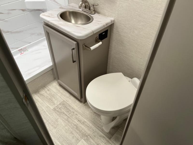 If you wish to escape the hustle and bustle of everyday life with your favorite people then check out this motorhome! Everyone will have a comfortable place to sleep between the rear corner 54" x 80" queen bed, the 52" x 96" bunk over cab with a 39" TV on a swivel for entertainment at night, and even the 76" Dream Dinette can transform into an extra sleeping space. Store all of your essentials in the closet just outside the rear corner bathroom which has a 24" x 36" shower and keep your perishables fresh in the refrigerator. The flip-up countertop extension makes it easier to prepare your home cooked meals, and you can add an optional exterior 32" TV to watch the big game outdoors!