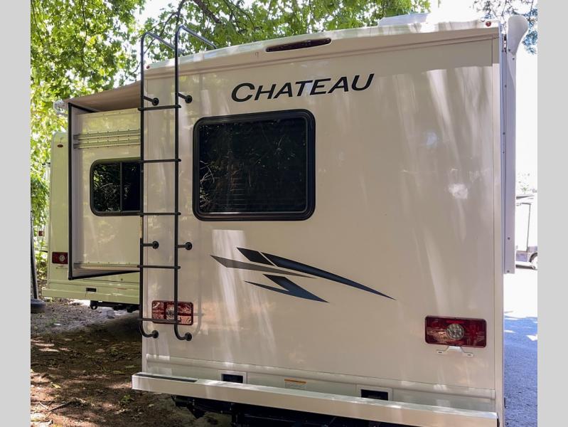 Experience a smooth ride to each destination with the Thor Motor Coach Chateau Class C gas motorhomes! There is a Ford E-Series chassis or optional Chevrolet chassis on select models, and each model includes an 8,000 lb. trailer hitch to bring the family car along. They are constructed with a welded tubular aluminum roof, sidewall cage construction, vacu-bond laminated roof, walls, and floor with block foam insulation to keep the heat and air conditioning inside. The slick fiberglass exterior with graphics package and black framed windows are sure to turn heads down the highway too. Inside, you'll be met with residential vinyl flooring, window privacy shades, a power bath vent, and pressed laminate kitchen countertops. There is even a tankless water heater for endless hot showers, a 4.0 kw gas generator to keep you going, and solar prep for off-grid capabilities!